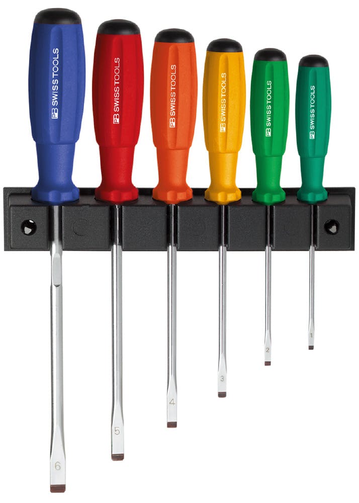 • ピービースイスツールズ 6本組 レインボーシリーズ スイスグリップ マイナスドライバーセット ホルダー付 ペーパーボックス入 8240.RBCBB 色分けドライバー カラードライバー DIY用 501850036【別送品】