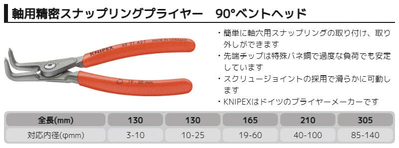クニペックス 軸用精密スナップリングプライヤー曲 SB 4921-A21 オープンスプリング付 90°ベントヘッド 自動車整備 506150212【別送品】
