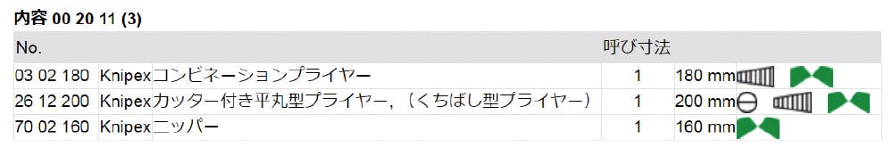 クニペックス アッセンブリーパック 002011 ペンチ ニッパー ラジオペンチ 506308011【別送品】