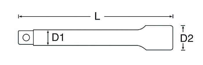 ●差込角(DR):3/8●全長(L;mm):75●軸径(D1;mm):12●ソケット外径(D2;mm):18●質量(g):69●差込の特殊なカットで、ソケットを軽く差し込むと11度まで首を振り、最後まで押し込むと固定し通常のエキステンションバーと同じように使えます●一般的なユニバーサルジョイントと比べて操作しやすく、しっかりと力が加わります●滑り止めのローレット入り