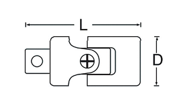 ●差込角(SQ):1/2●全長(L;mm):72●ソケット外径(D;mm):25●入り組んだ所での作業を容易にするユニバーサルジョイント
