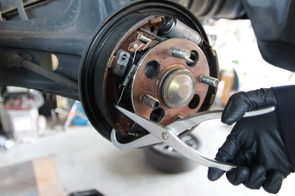 ブレーキシュー交換, スプリング脱着, 自動車整備