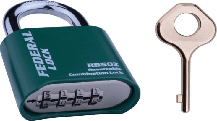 フェデラル ダイヤル式 南京錠 チェンジKEY付 グリーン RB50ZR-GN-P 防犯錠 4桁ダイヤル 鍵 3678000062【別送品】