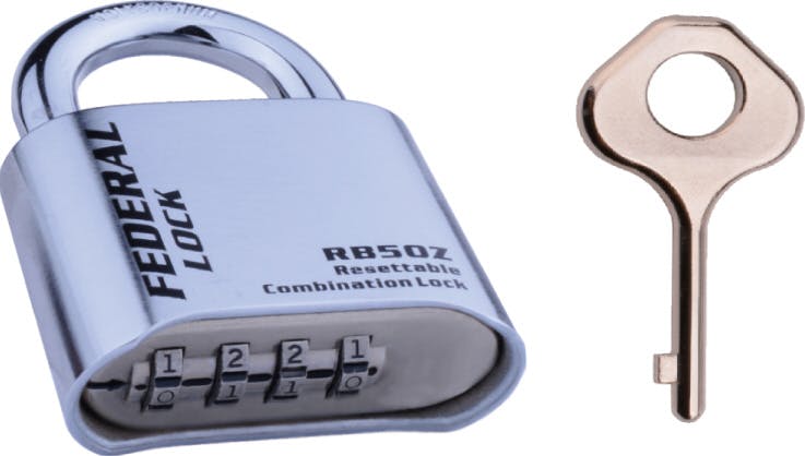 • フェデラル ダイヤル式 南京錠 チェンジKEY付 クロム RB50ZR-K-P 防犯錠 4桁ダイヤル 鍵 3678000064【別送品】