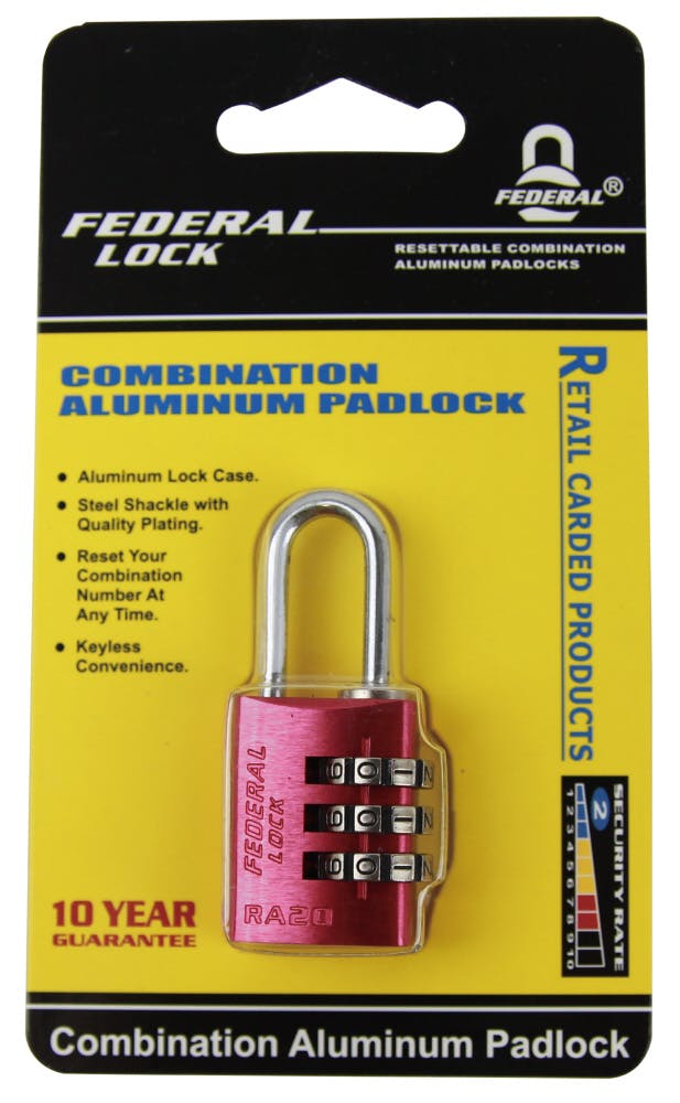 フェデラル ダイヤル式 アルミ 南京錠 20mm レッド RA20-R-P 防犯錠 3桁ダイヤル キャリーケース 3678001060【別送品】