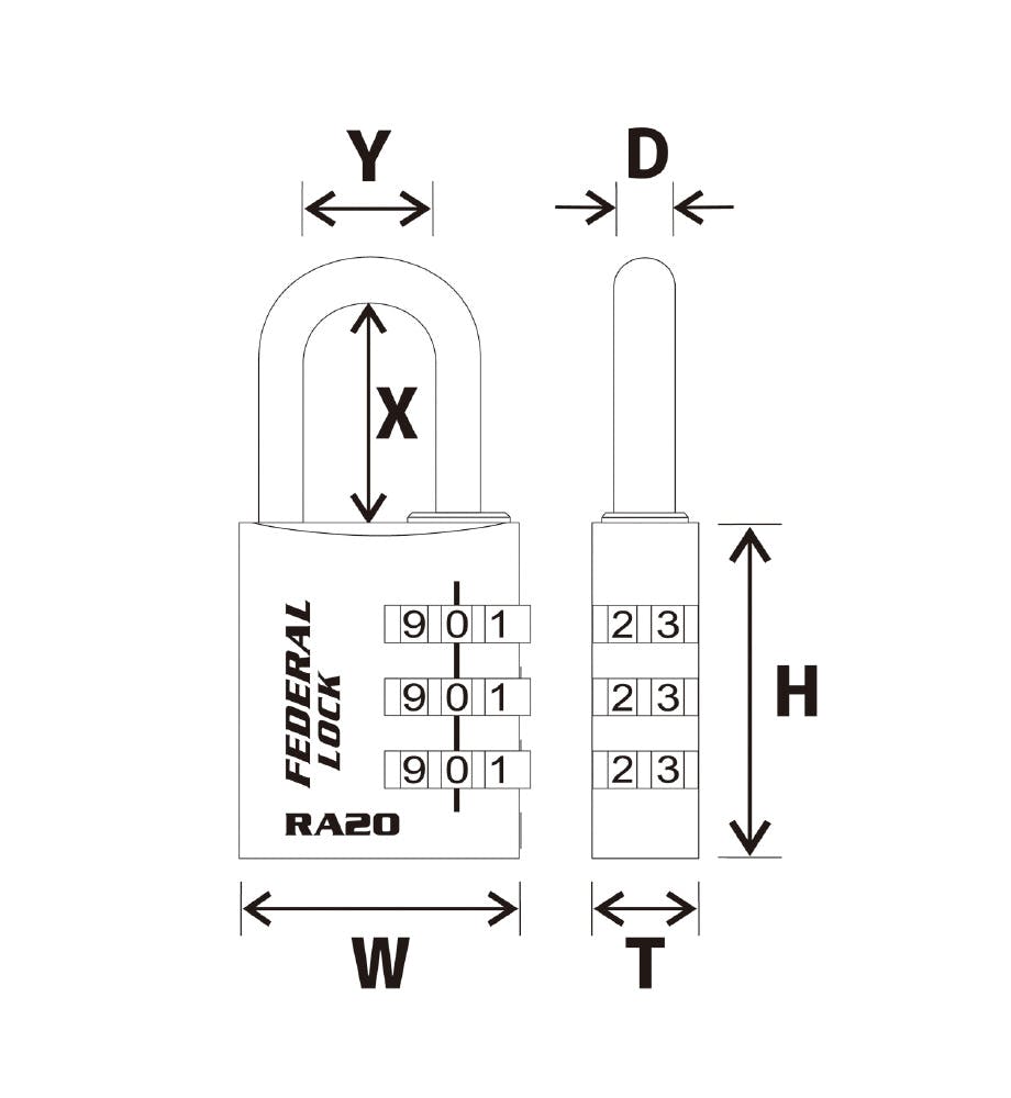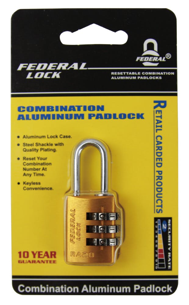 フェデラル ダイヤル式 アルミ 南京錠 20mm イエロー RA20-Y-P 防犯錠 3桁ダイヤル キャリーケース 3678001062【別送品】