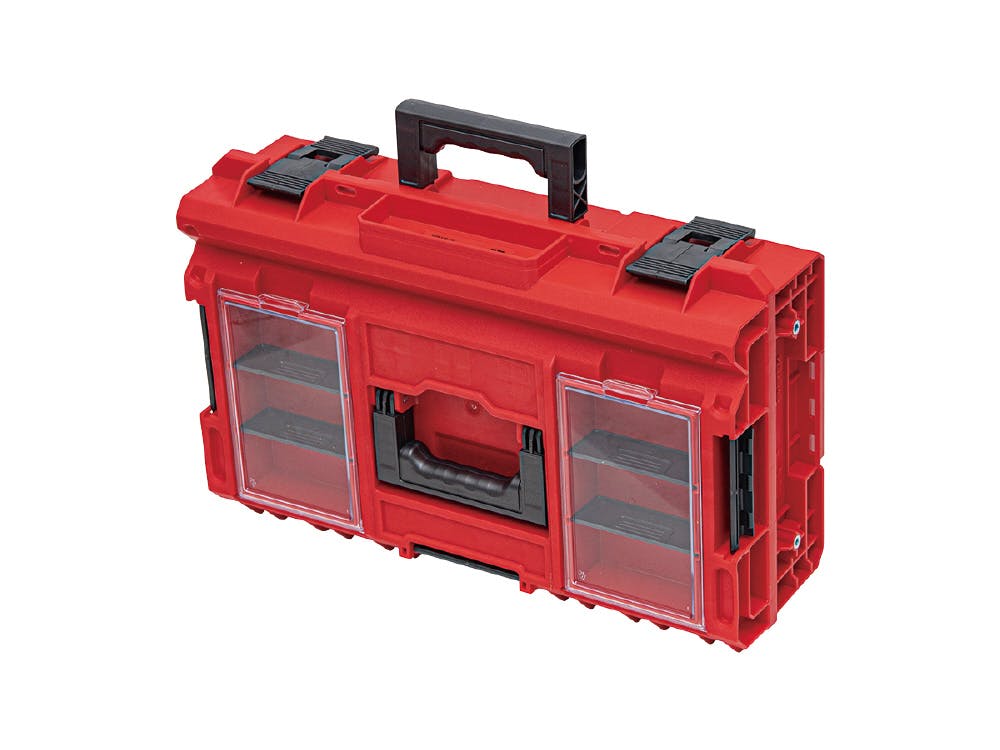 ●可動式仕切りとポリカーボネート製のスライドを備えた大容量のオーガナイザーが2つあります。●M8サイズねじ式インサートを装備しニーズに合わせたカスタマイズが可能。●中型ツール用のコンテナ機能とオーガナイザー機能を兼ね備えたユニバーサルなモジュール式ツールボックス。●調整可能な仕切りと6つの取り外し可能なバケットを装備。●カバーと本体の強化構造により、50 kgの耐荷重と120 kgまでの耐圧力。
