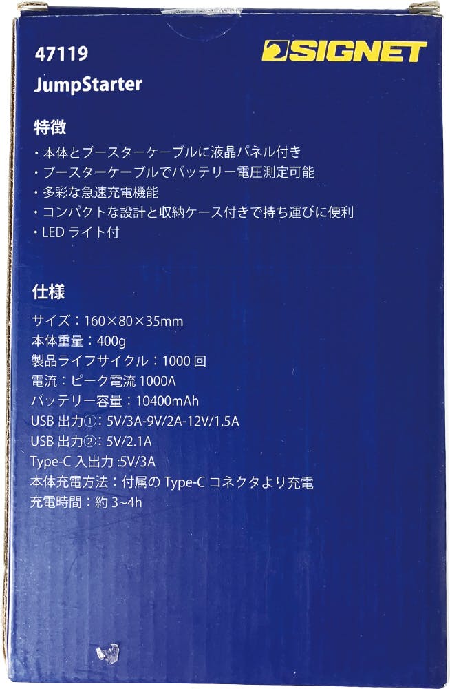 SIGNET 12V専用ジャンプスターター 10400mAh 47119 自動車整備 バッテリー上がり対策 000856847119【別送品】