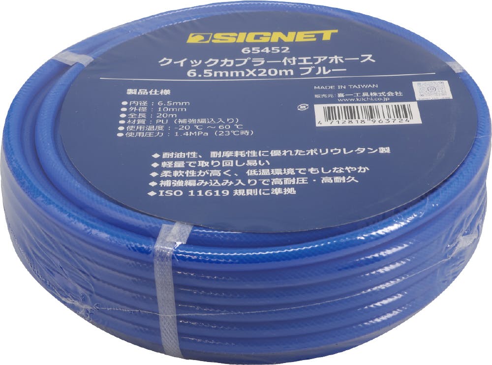 SIGNET クイックカプラー付 エアホース 6.5mm×20m ブルー 65452 エアツール ポリウレタン 000856865452【別送品】