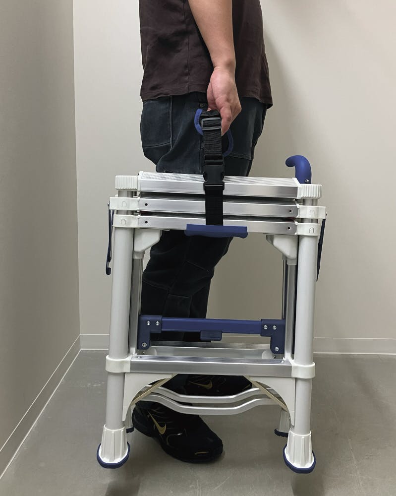 ●展開後サイズ(mm):W460×L830×H1065●展開前サイズ(mm):W440×L115×H600●手すり長さ(mm):320●段間距離(mm):300●総段数:4●耐荷重(kg):150●質量(kg):7.3●材質:アルミニウム●手すりが付いているので安全に上り下りすることが出来ます。●持ち運びも簡単なため,DIY、エアコンや壁の掃除、窓ふき、電球交換、洗車等、様々なシーンで活躍します。