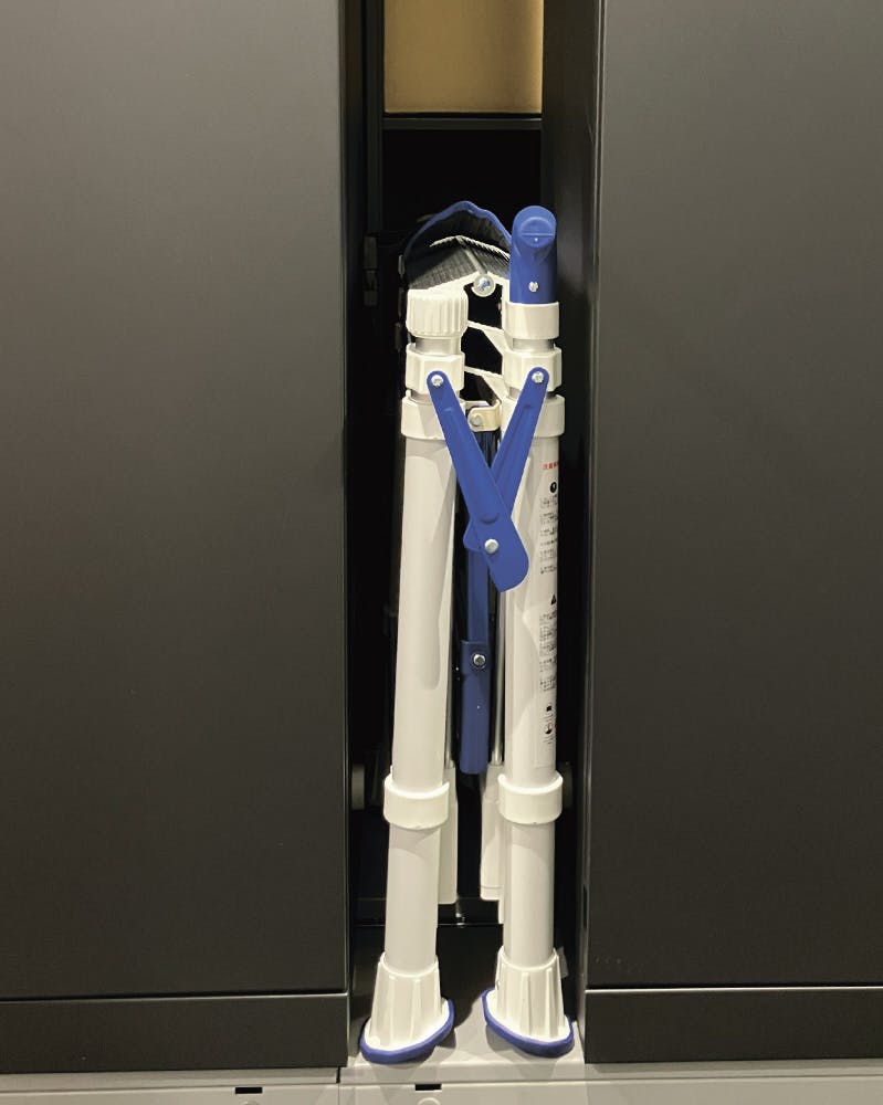 ●ご使用前にロック状態確認用の穴が全て緑色になっていることを必ずご確認ください。赤色の場合伸長時のロックが上手くかかってない可能性があります。赤色状態では絶対に使用しないでください。●手すり部は、作業時の姿勢を補助をするためのものです。体重をかけすぎないようにご注意ください。