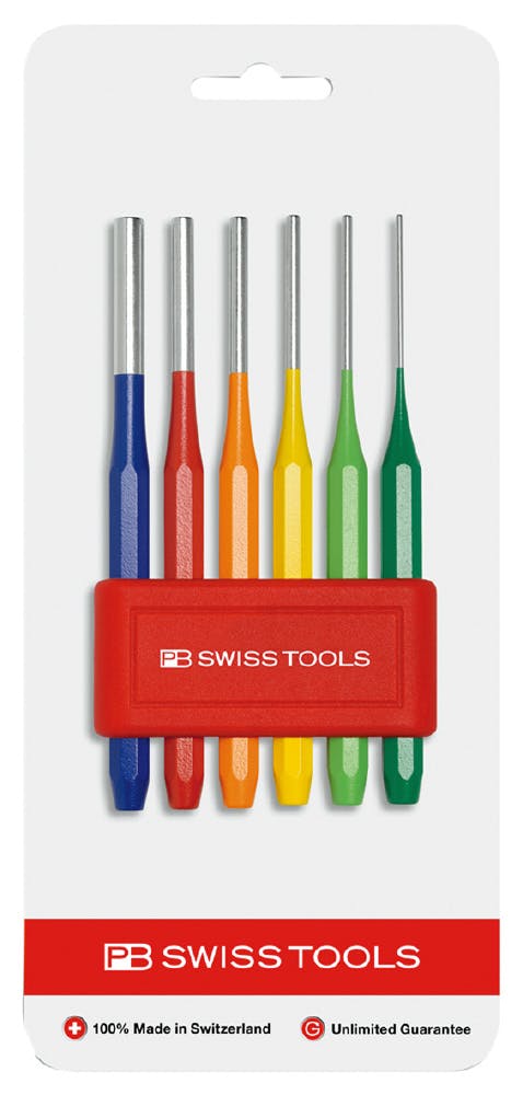 ピービースイスツールズ 6点入 平行 ピンポンチセット ホルダー付 レインボー 台紙付 ピン抜き 精密作業 金属加工 755.BLRBCN 000501238457【別送品】