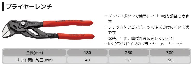 クニペックス プライヤーレンチ プラスチックコーティング 全長180mm 配管作業 水回り 修理工具 8601-180 000506212013【別送品】