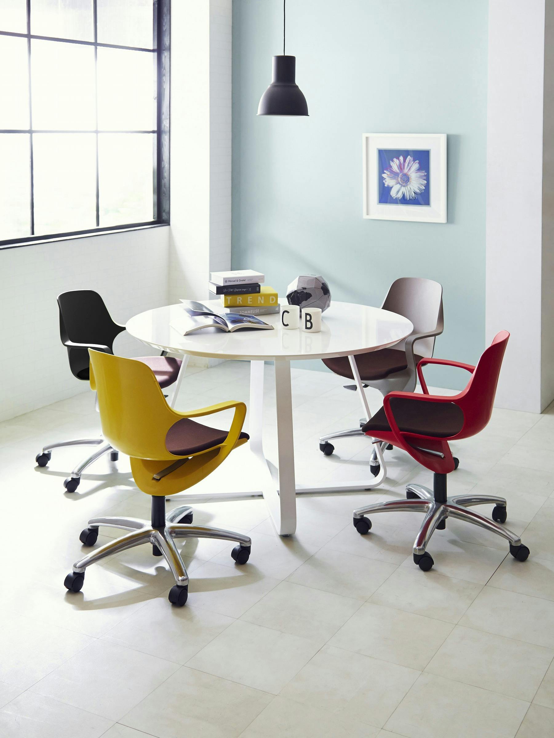 本体はスタイリッシュで鮮やかなカラーリング。自宅やカジュアルなオフィスにぴったりのデスクチェアです。