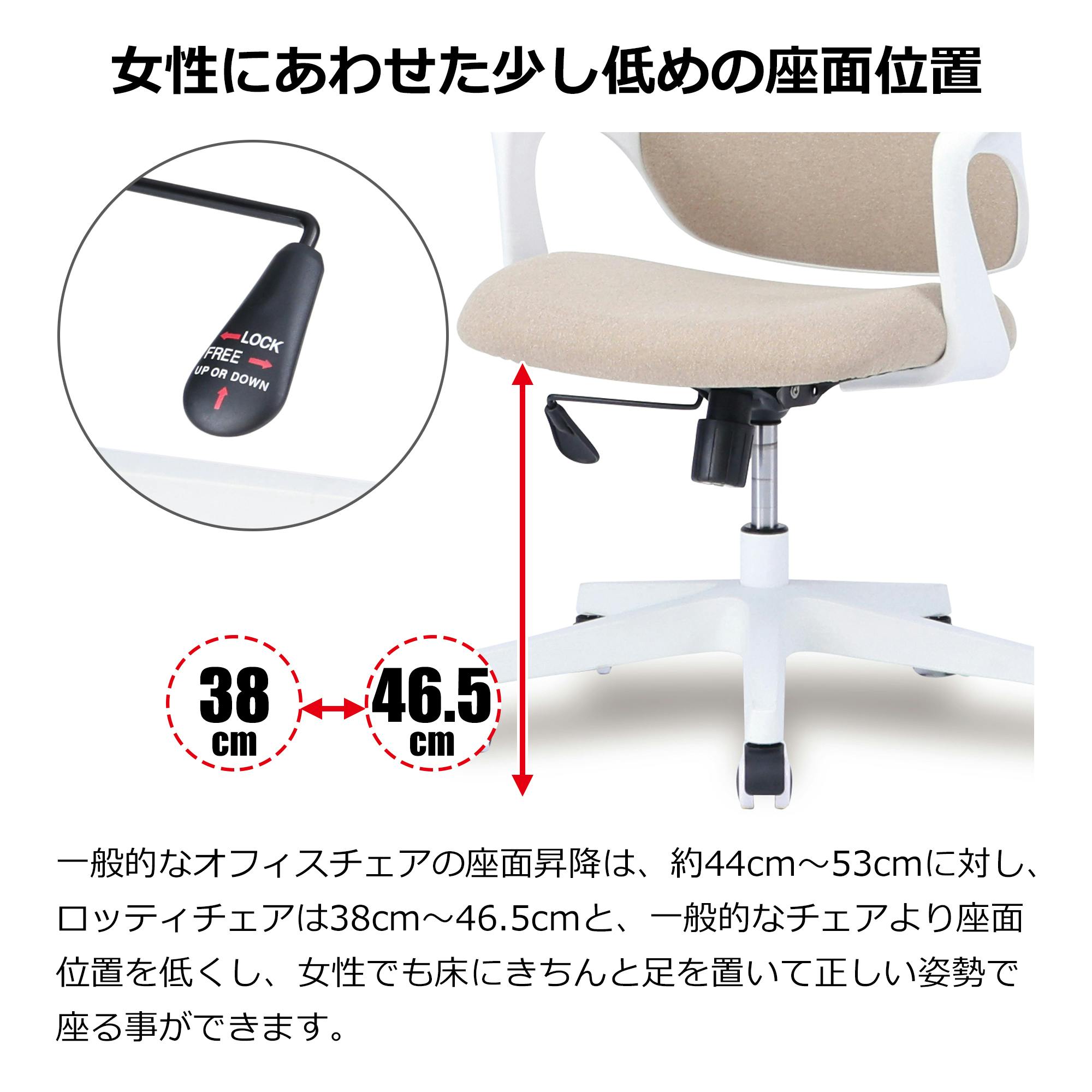 Lapifeli オフィスチェア ロッティ ベージュ パソコンチェア ワークチェア 女性向けサイズ 事務所 椅子 イス アームレスト キャスター 昇降 布 ロッティ 360872 デスクチェア 肘付きチェア 回転チェア【別送品】