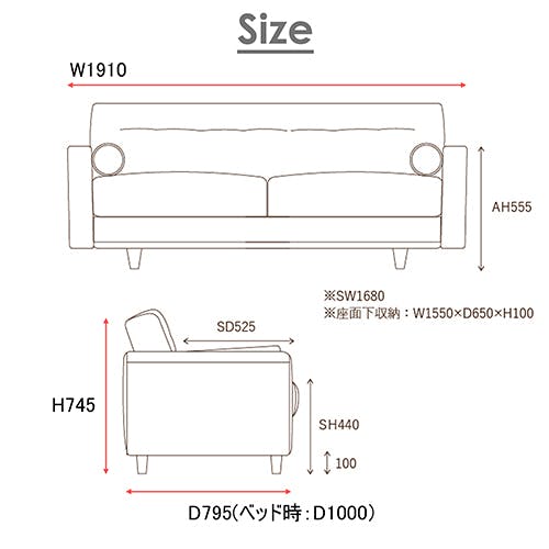 座面下のおしゃれな木部や背と肘のかわいいチェック柄など細部までデザインにこだわりました。座面を上げると収納スペースがあるのでブランケットなど収納でき、また、ベッドにして寝ることもできるので機能性豊富な商品です。女性でも簡単にベッドにできます。カラーはブルー・ベージュ・レザーファブリック生地ブラウンの3色を展開しています。肘クッション2つ付きです。