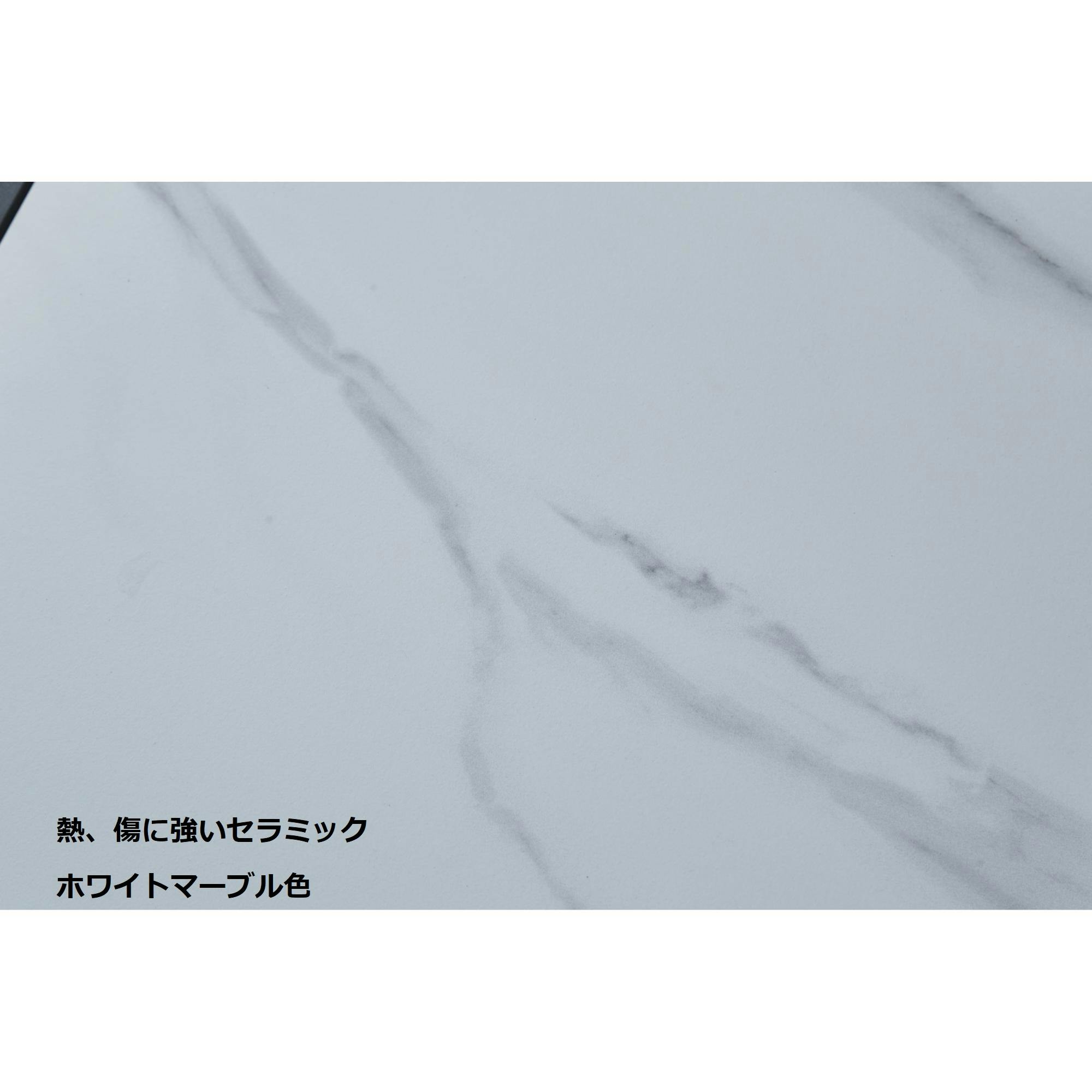 天板セラミック。天板と黒脚の一体感が美しく、脚元も軽快なため圧迫感を与えません。