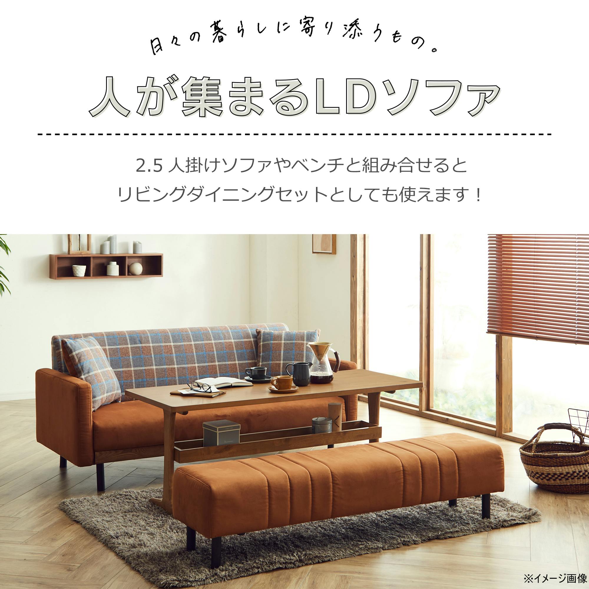 収納棚付き。ソファに座って使いやすい高さに設計されています。