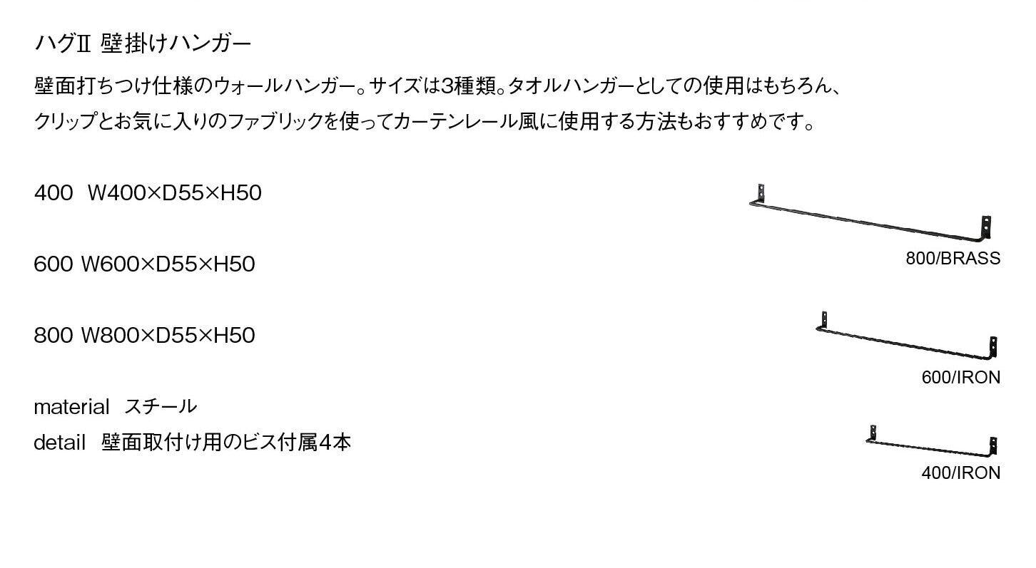 壁面打ちつけ仕様のウォールハンガー。サイズは4種類。タオルハンガーとしての使用はもちろん、 クリップとお気に入りのファブリックを使ってカーテンレール風に使用する方法もお勧めです。