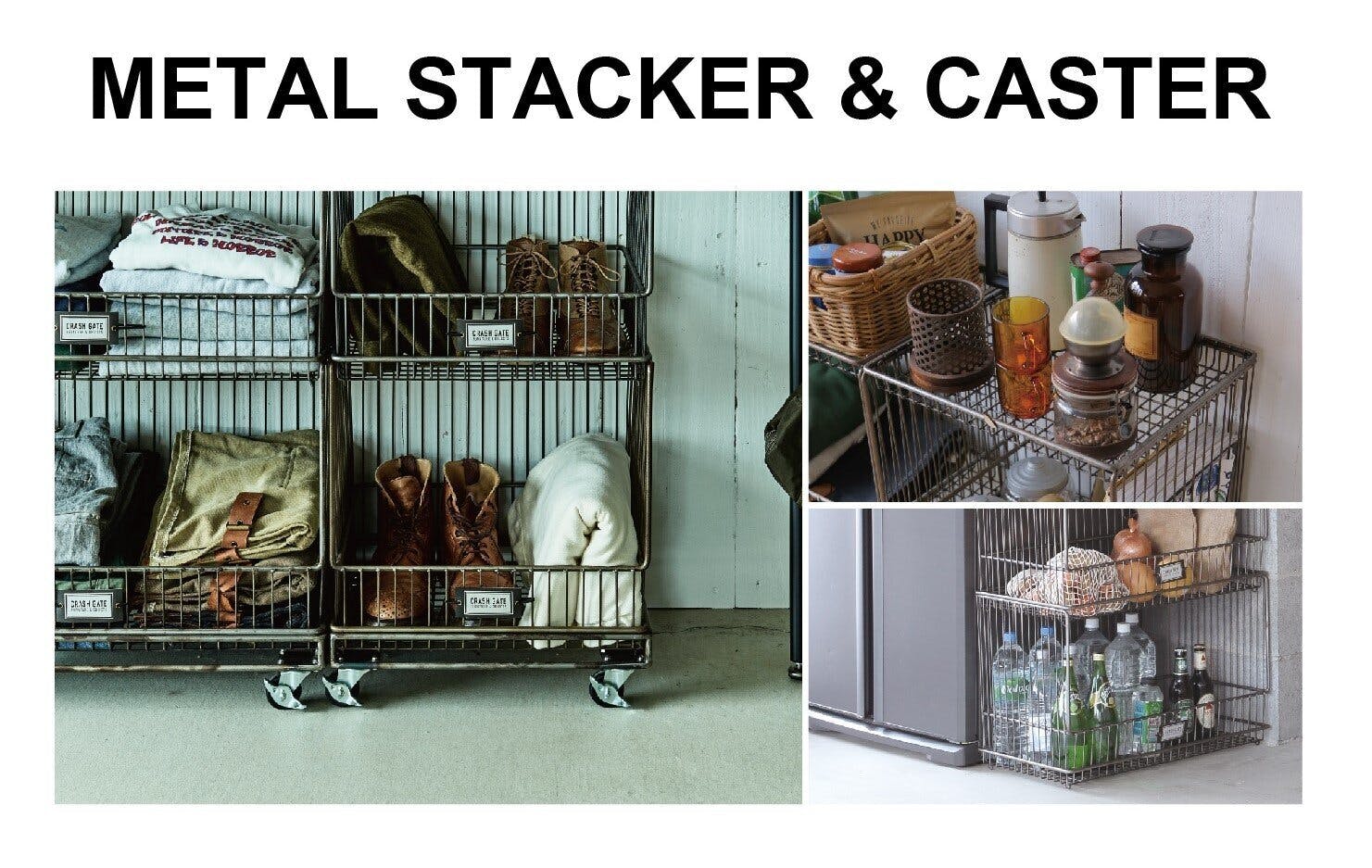 同じ幅同士でスタッキングができます。冷蔵庫横でストッカーとして 使ったり、デスク周りで書類や小物を入れたり、マルチにお使いい ただけます。キャスターを使用すると楽に移動ができます。