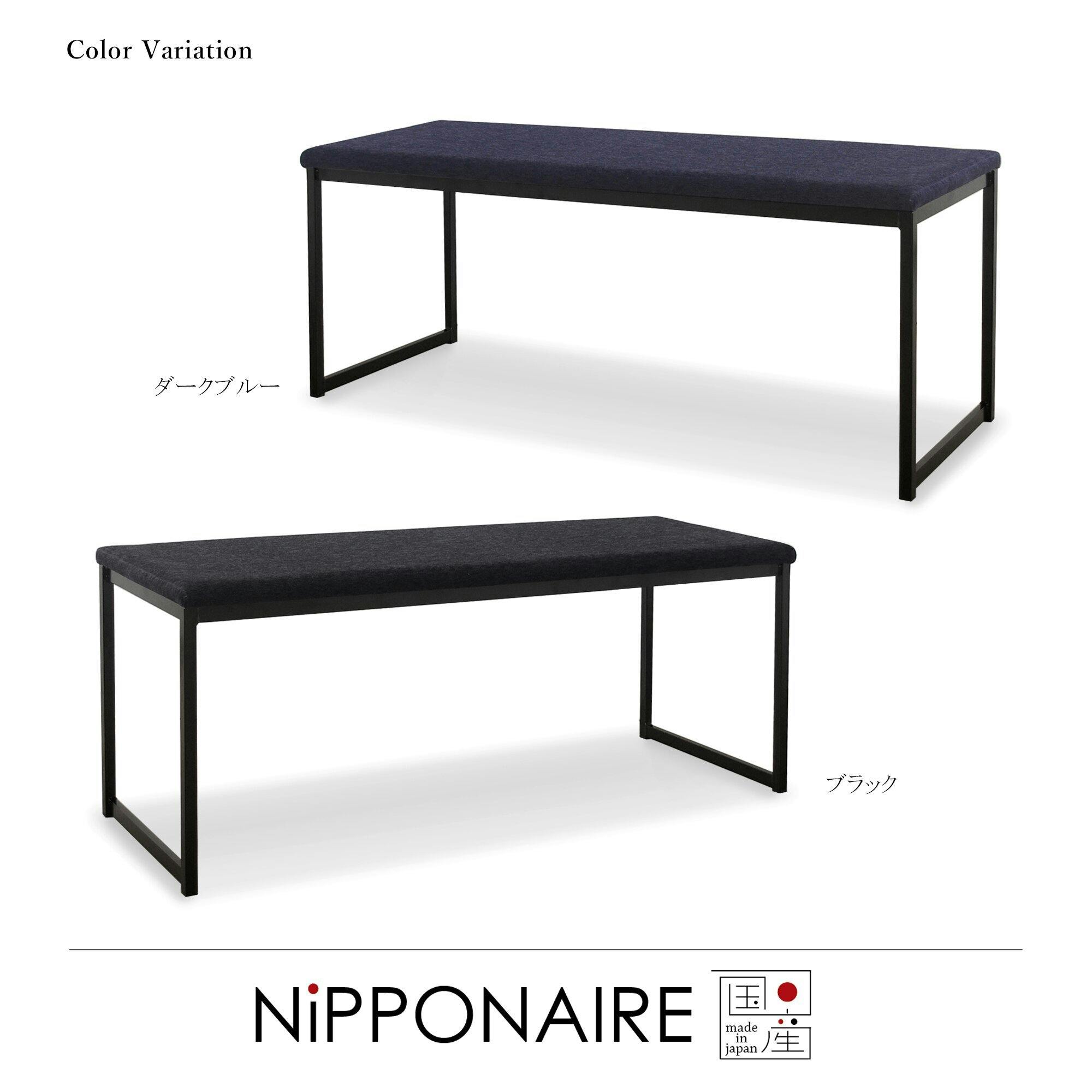 NIPPONAIRE(ニッポネア) ベンチ カラス ダークブルー/フレームブラック 幅140cm 国産家具 国産 椅子 ダイニングチェア 食卓椅子 平椅子 418136 スチール脚 おしゃれ ファブリック【別送品】
