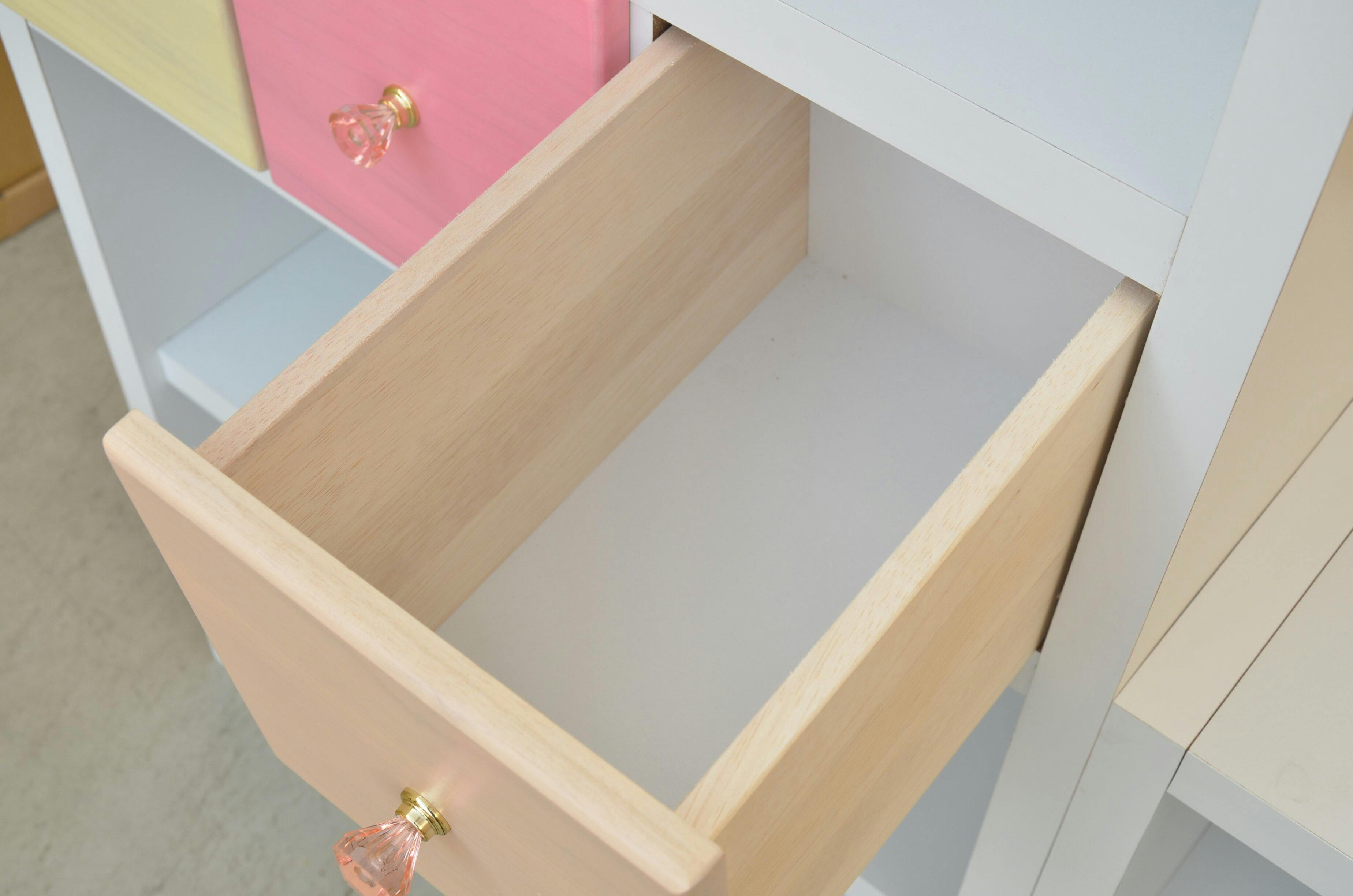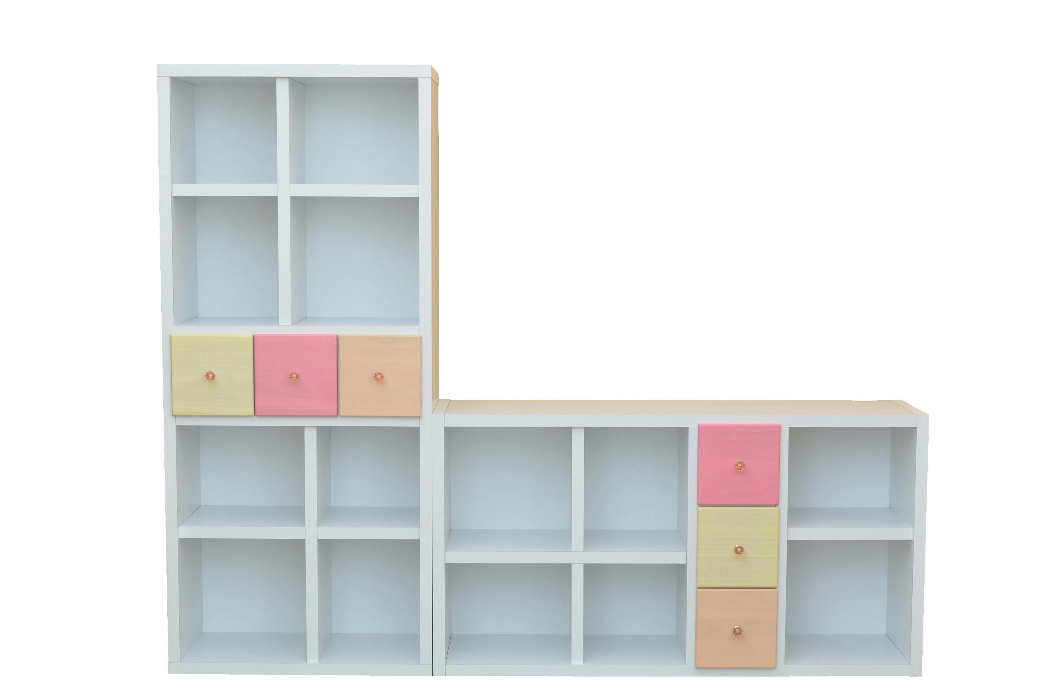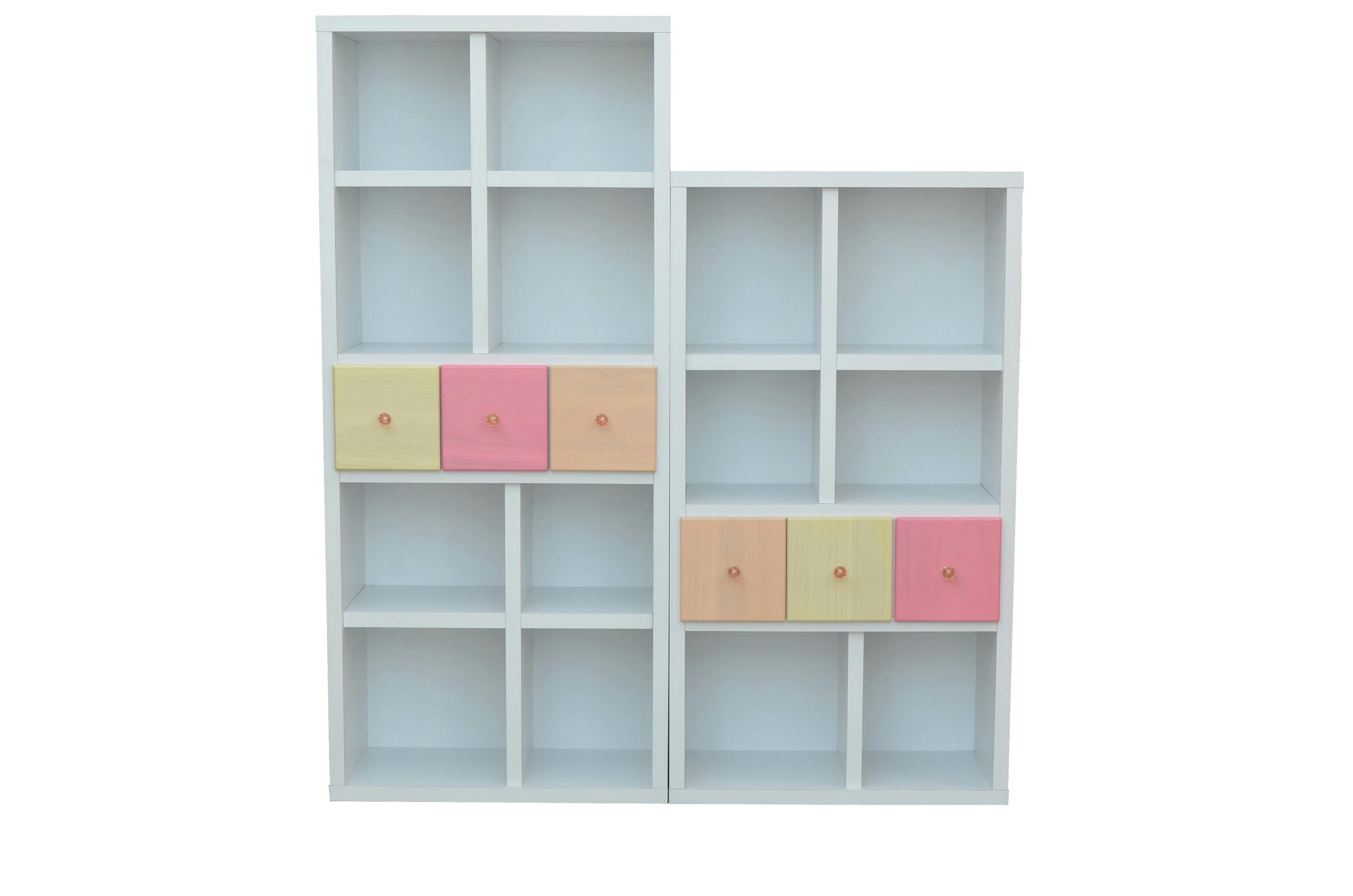 縦方向・横方向の両方で使用ができます。逆さでも使用できます。3色の引き出し付きです。※レール無し高さ147cmのハイタイプと高さ118cmのロータイプの2サイズ展開。
