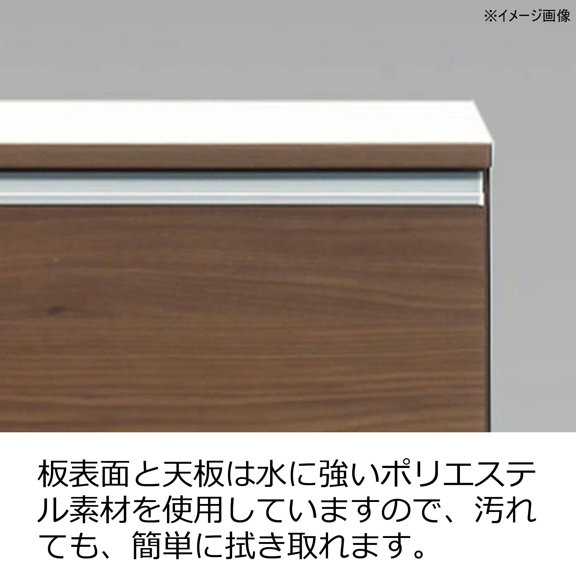 取手はアルミ製です。引き出しはローラーレール式です。板表面と天板は水に強いポリエステル素材です。