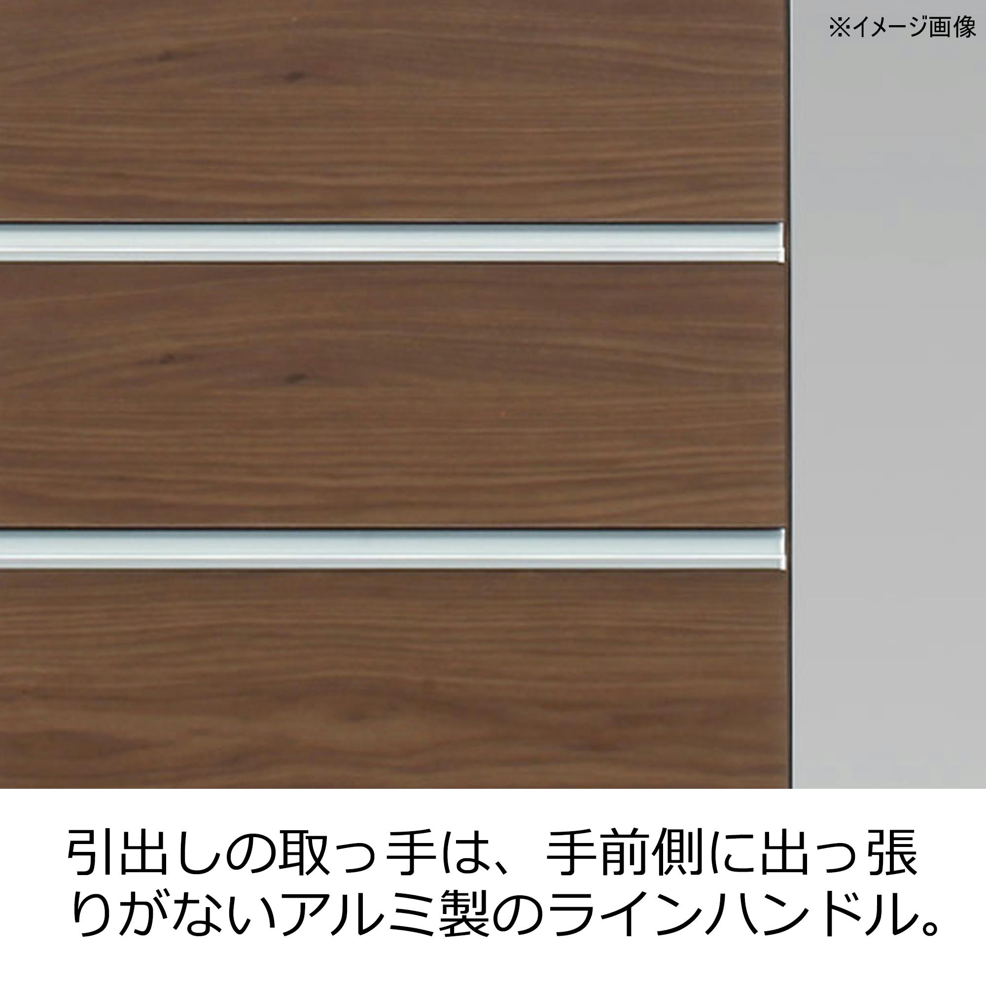 取手はアルミ製です。引き出しはローラーレール式です。板表面と天板は水に強いポリエステル素材です。