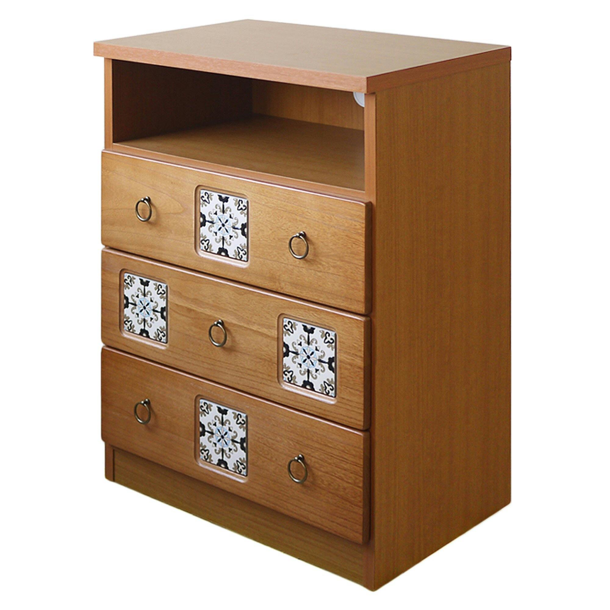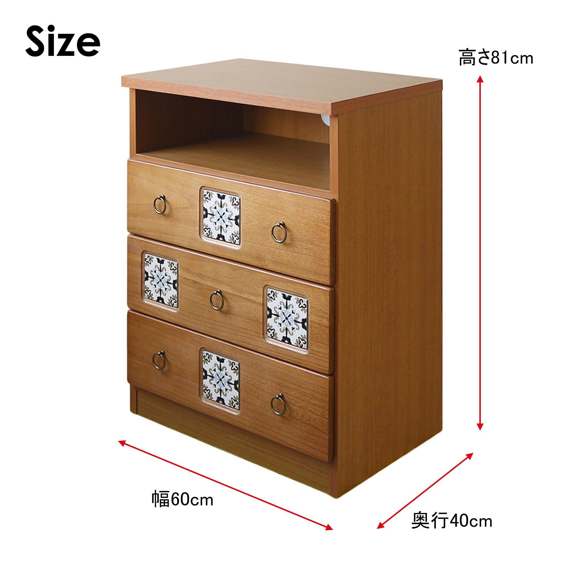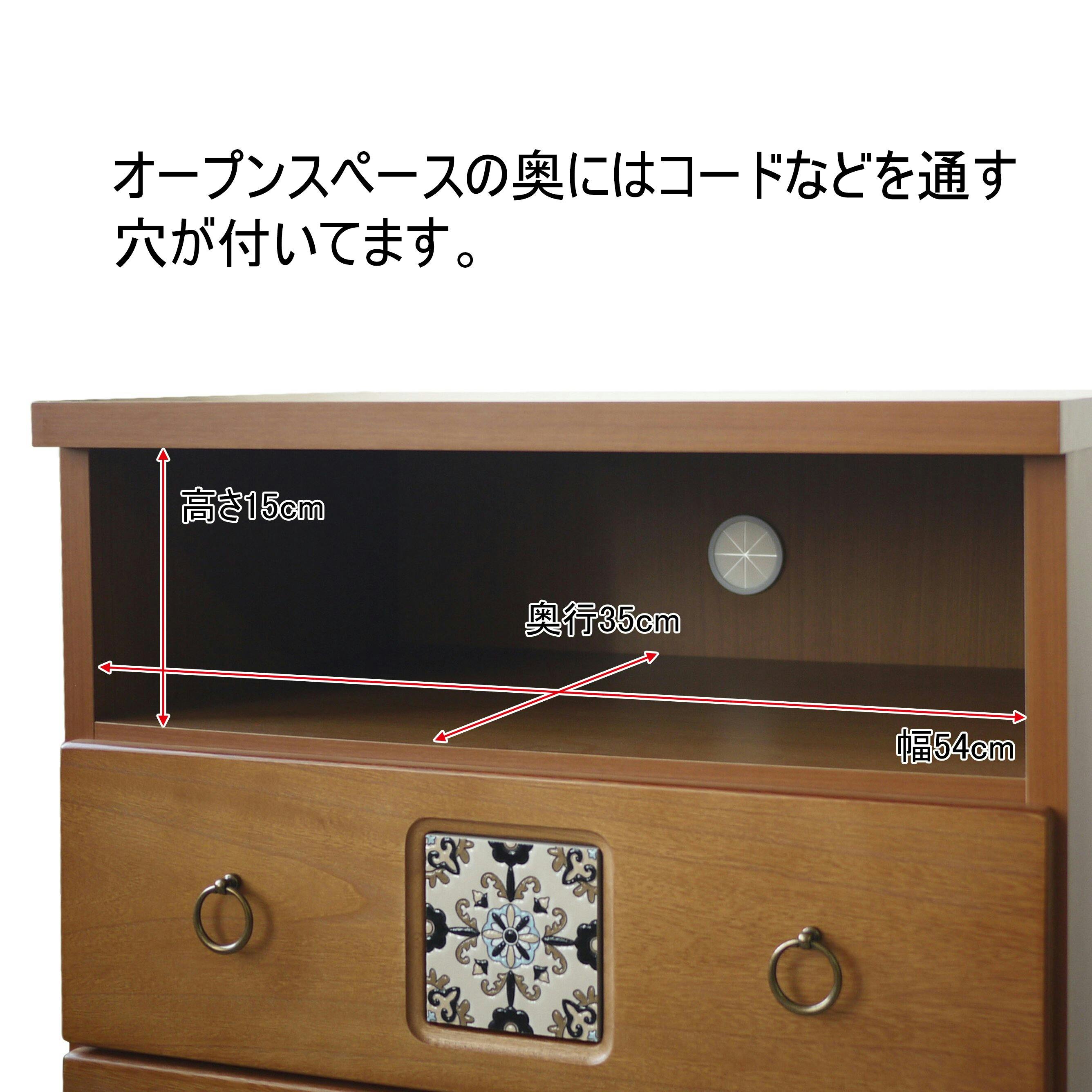 引き出しはオープンレールになっており、スムーズに開閉が可能です。オープンスペース奥には、便利な配線孔付き。1、ナチュラル 2、ブラウン 3、ホワイト ※各色によって別のタイルを使用しております。
