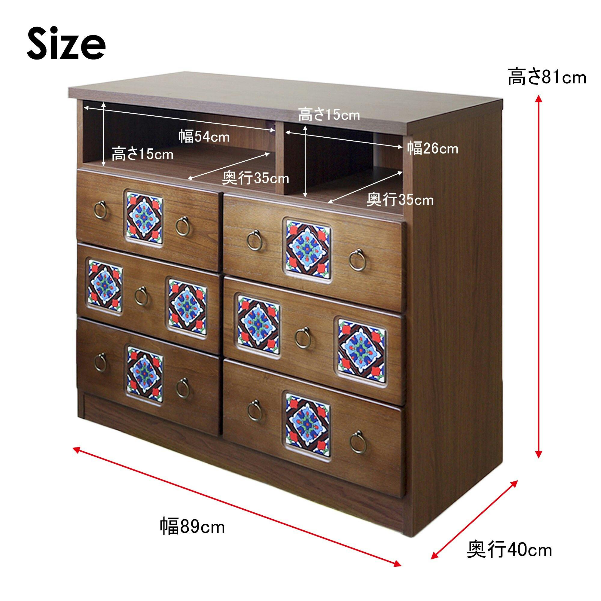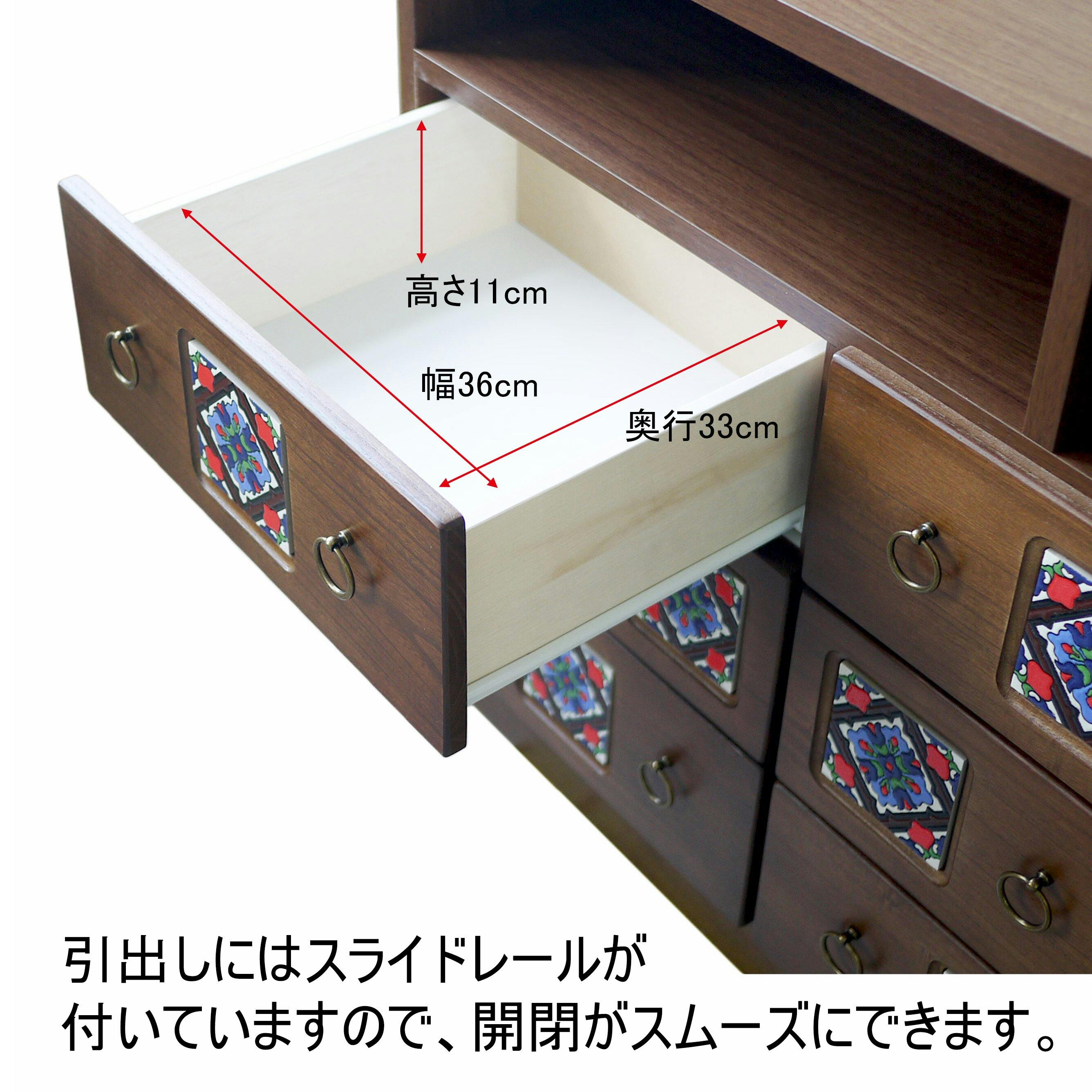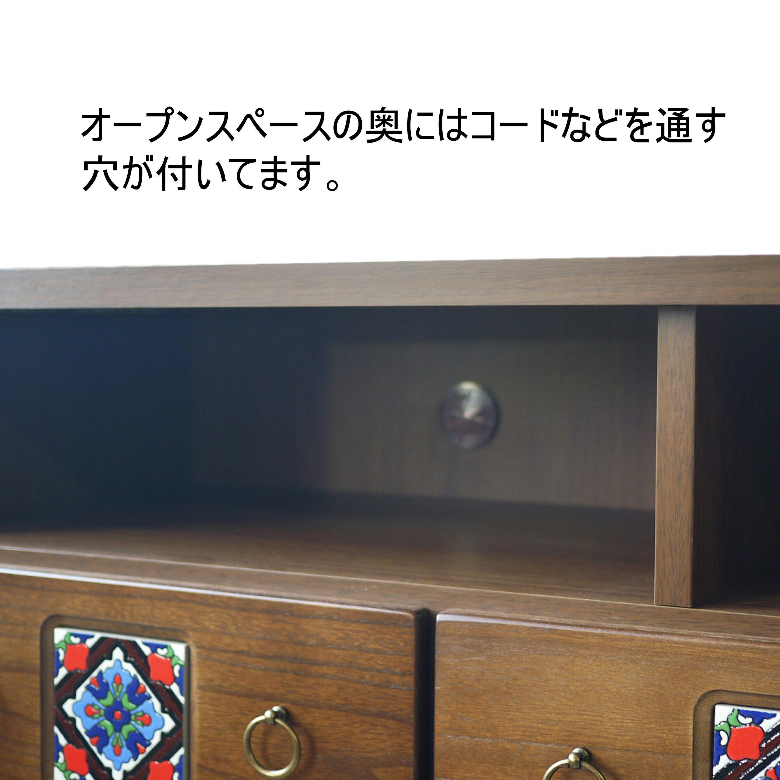 引き出しはオープンレールになっており、スムーズに開閉が可能です。オープンスペース奥には、便利な配線孔付き。1、ナチュラル 2、ブラウン 3、ホワイト ※各色によって別のタイルを使用しております。