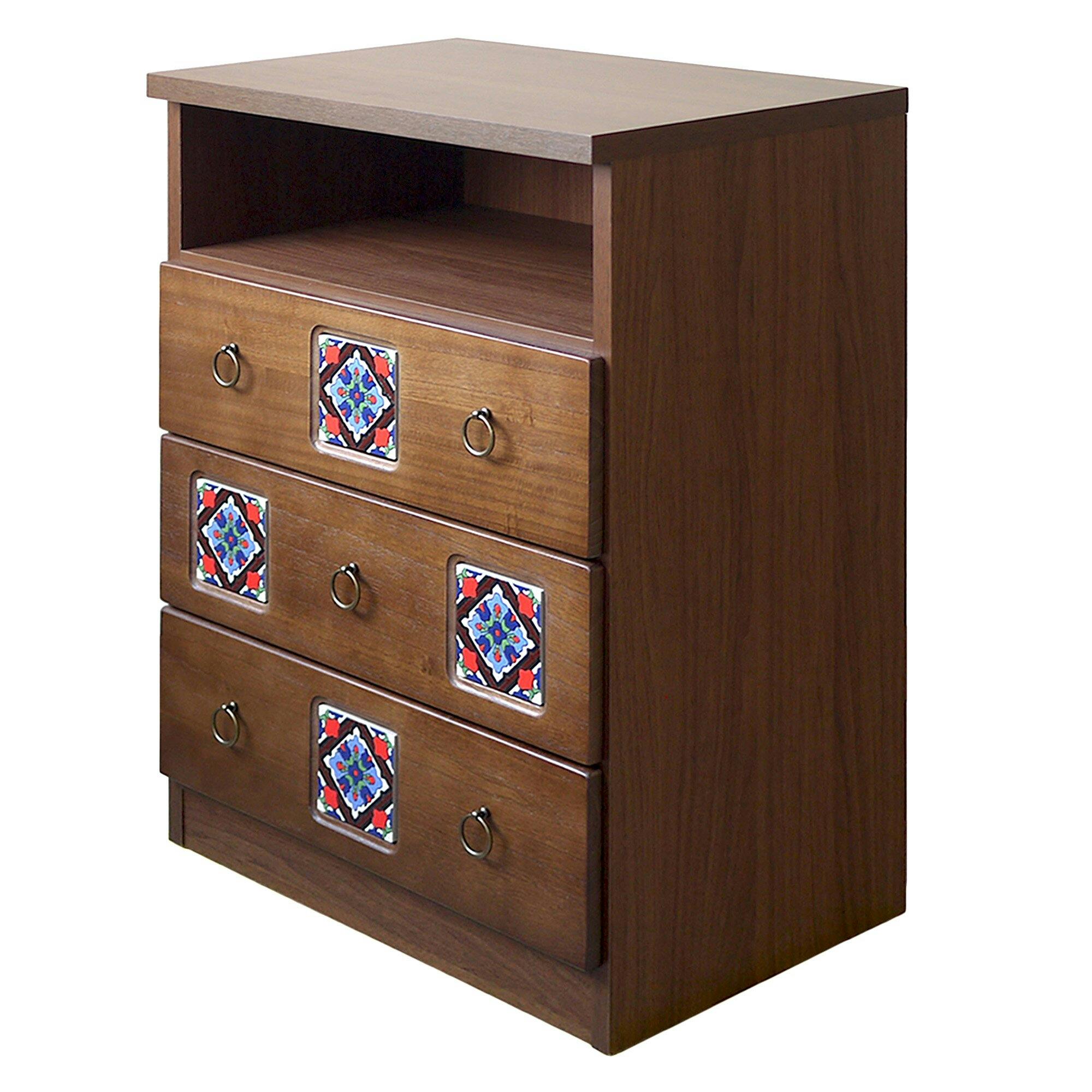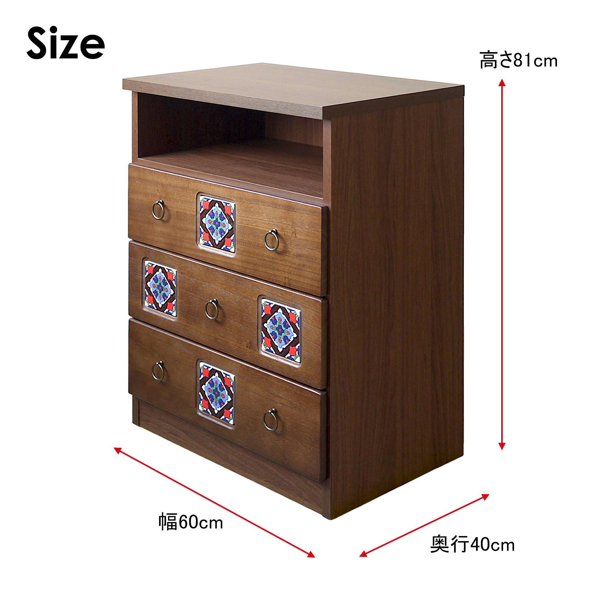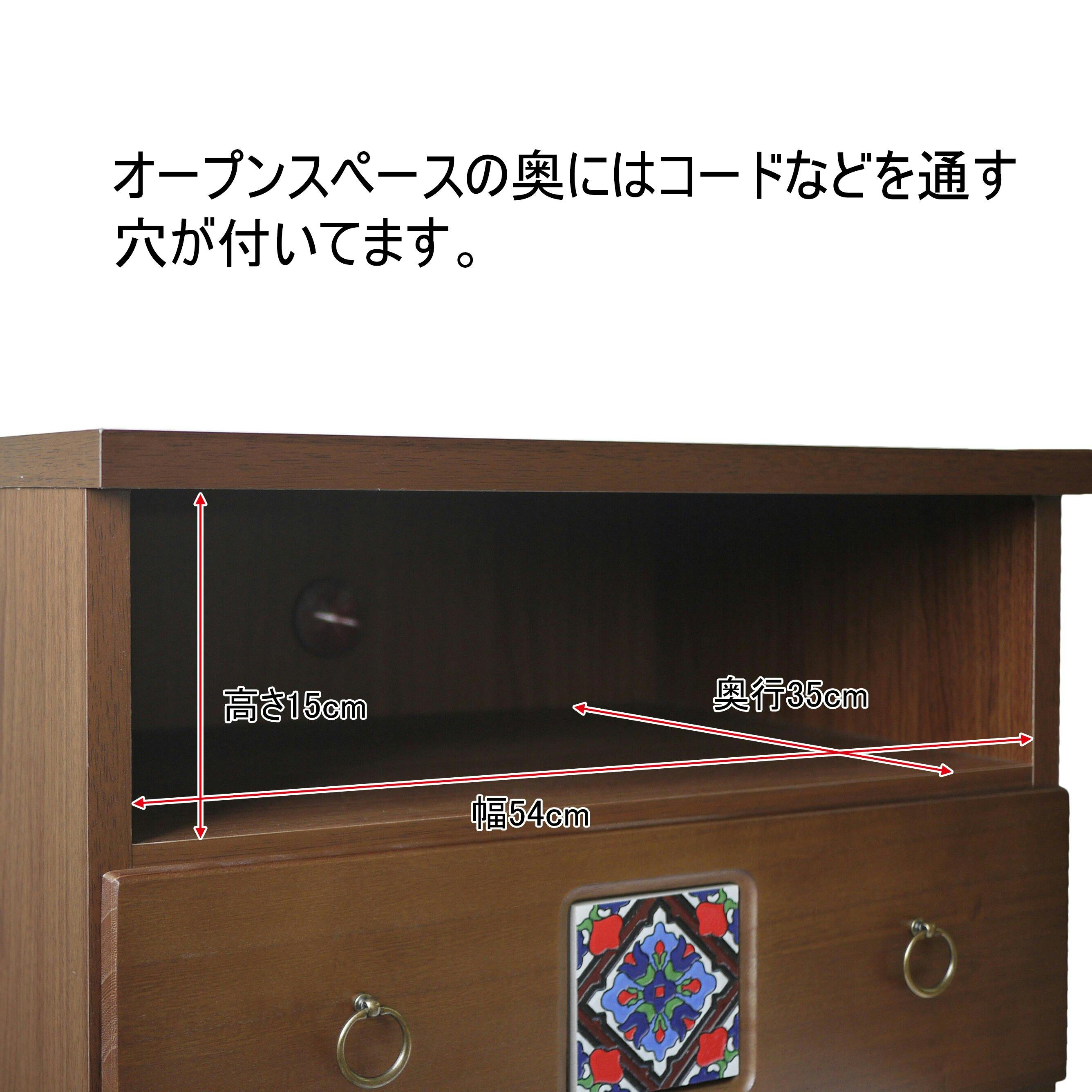 引き出しはオープンレールになっており、スムーズに開閉が可能です。オープンスペース奥には、便利な配線孔付き。1、ナチュラル 2、ブラウン 3、ホワイト ※各色によって別のタイルを使用しております。