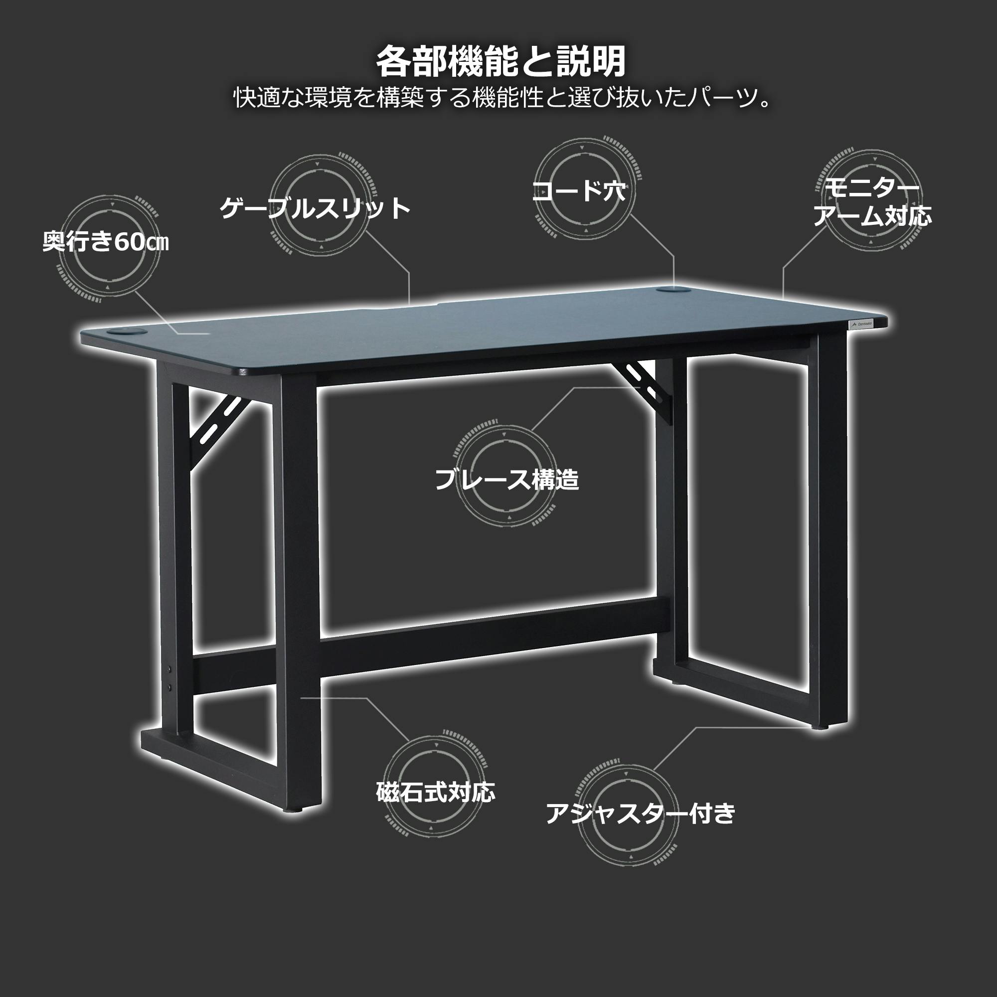 機能:ケーブル配線穴/ケーブル配線ノッチ/モニターアーム対応/磁石付き電源タップ対応