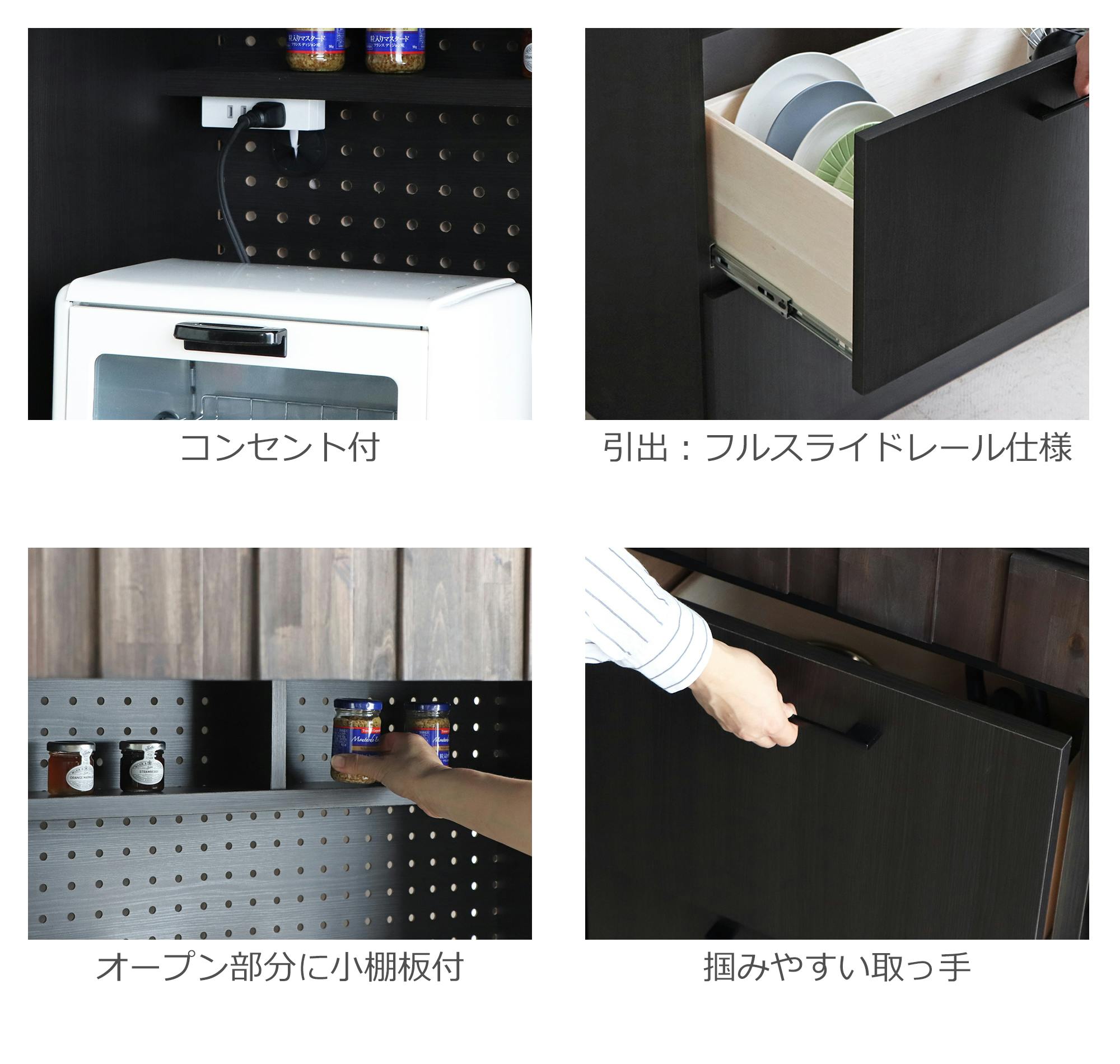前板:アカシア無垢(オイル塗装) 強化紙化粧板 天板:MDF 本体:プリント化粧板 原産国:日本