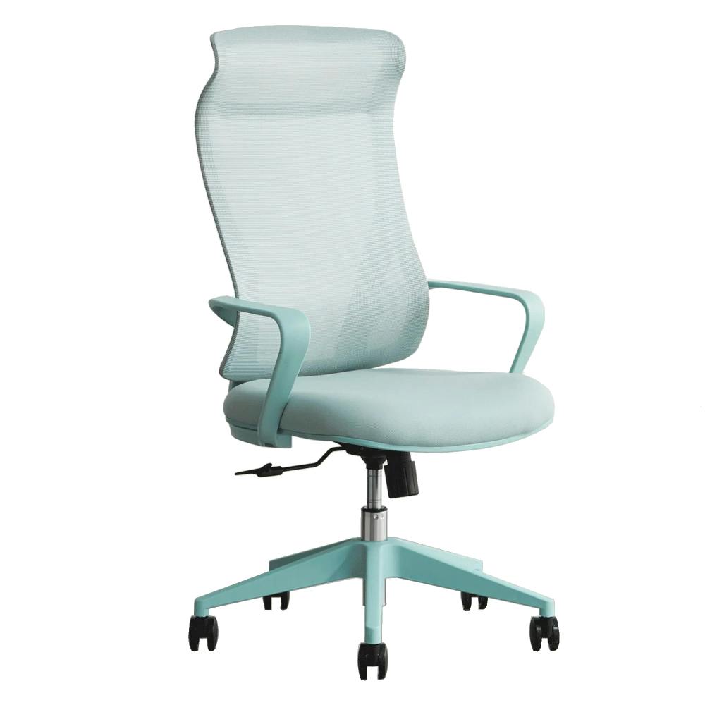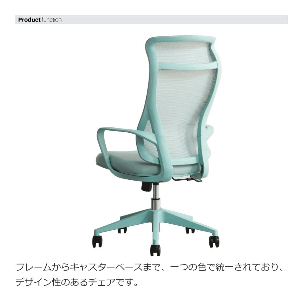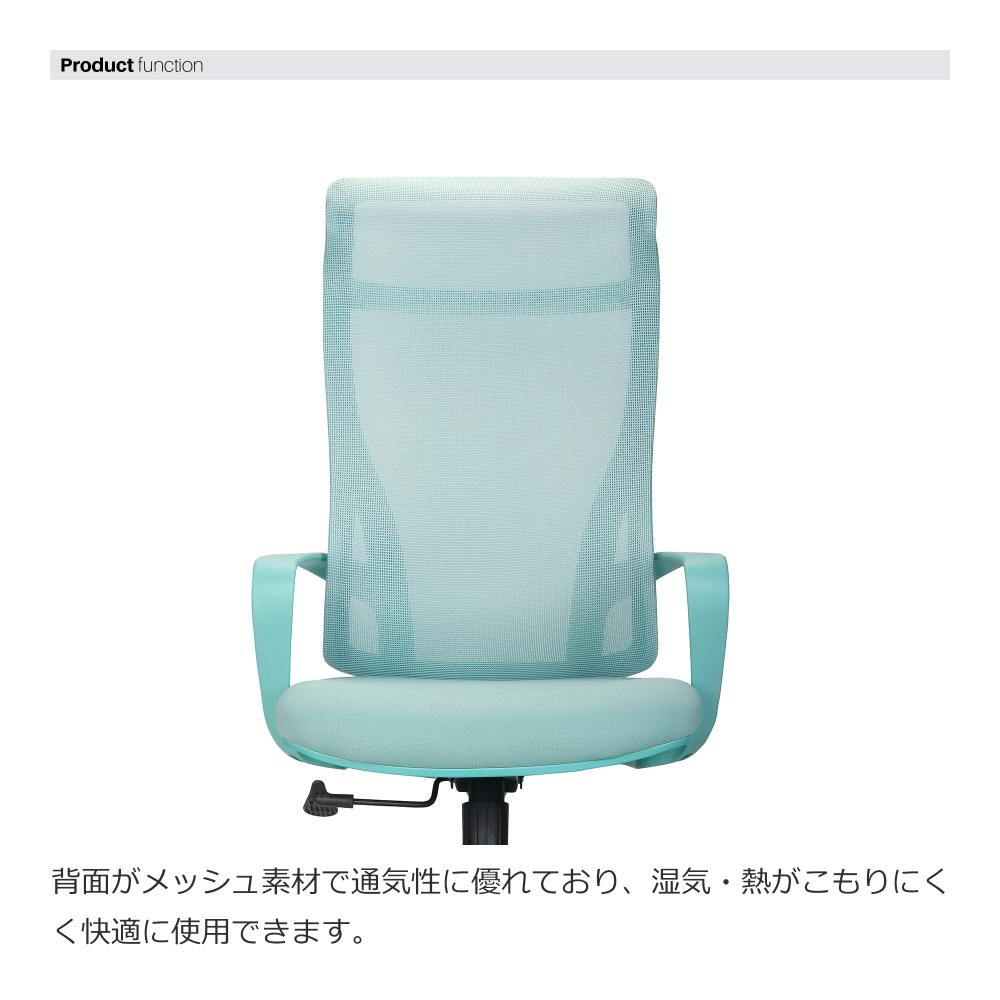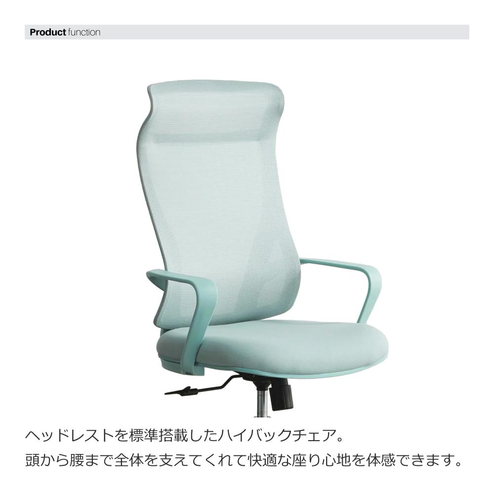 背面がメッシュ素材で通気性に優れているだけでなくヘッドレストを標準搭載したハイバックチェアで快適な座り心地を体感できます。