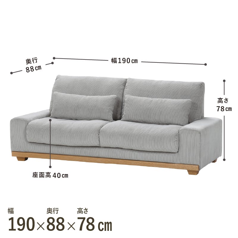 関家具 ToMeet 3人掛けソファ アイモ 幅190cm グレー ファブリック 木飾り クッション付き 407782(配送方法:開梱設置) 4550140077821【別送品】