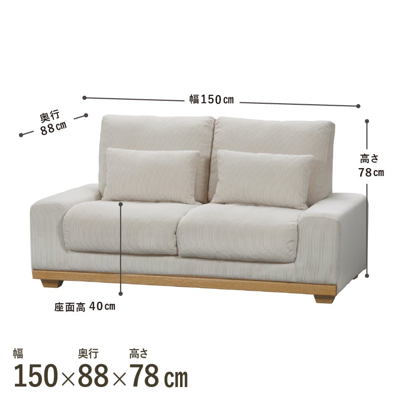 関家具 ToMeet 2人掛けソファ アイモ 幅150cm アイボリー ファブリック 木飾り クッション付き 407783(配送方法:開梱設置) 4550140077838【別送品】