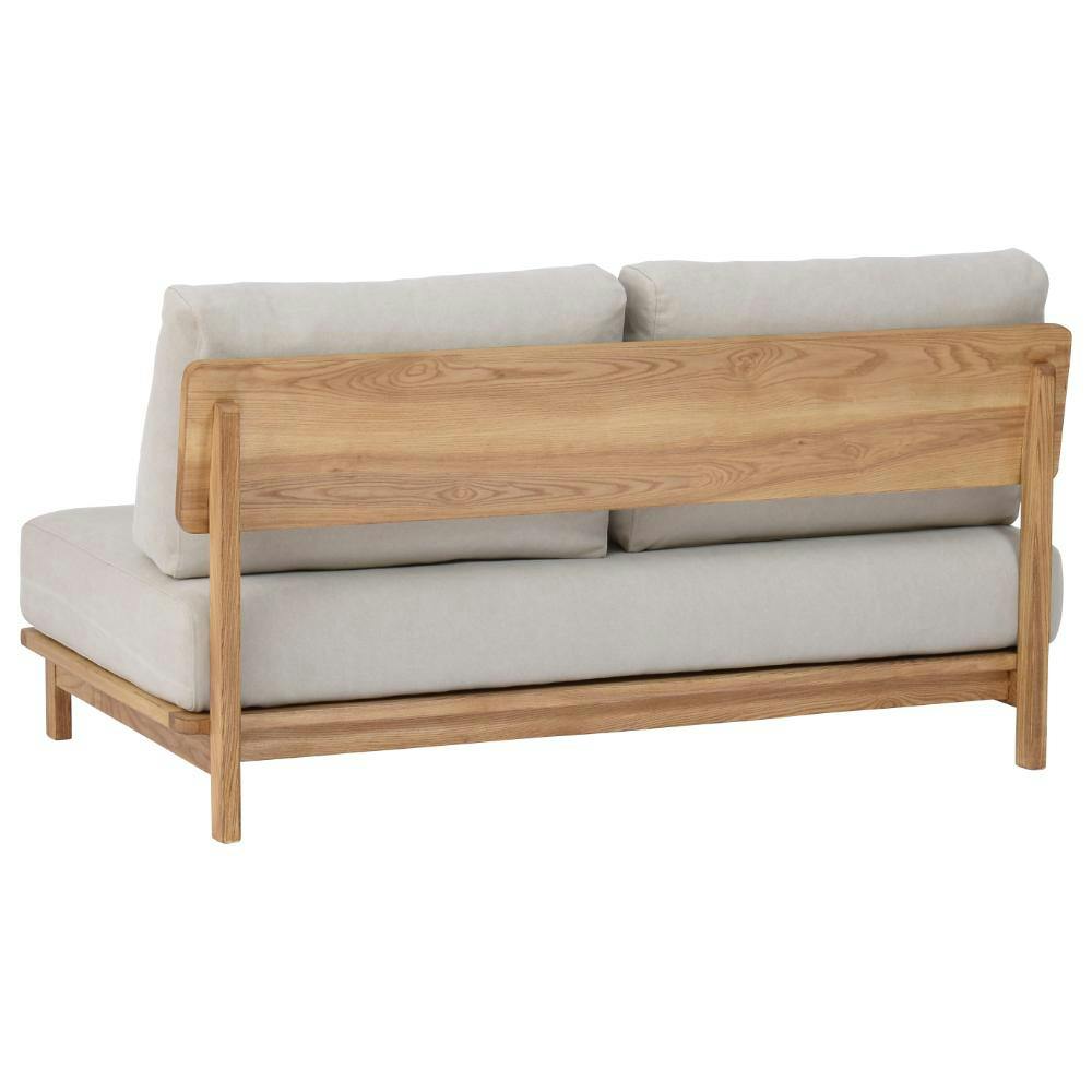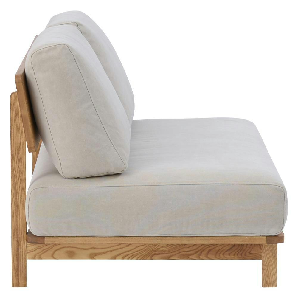 帆布生地を使用した厚めのクッションにアッシュ材の無垢を使用したスノコタイプのフレームを合わせ、シンプルでお部屋に合わせやすいソファ。背面もきれいな仕上げでお部屋の真ん中に置けます。