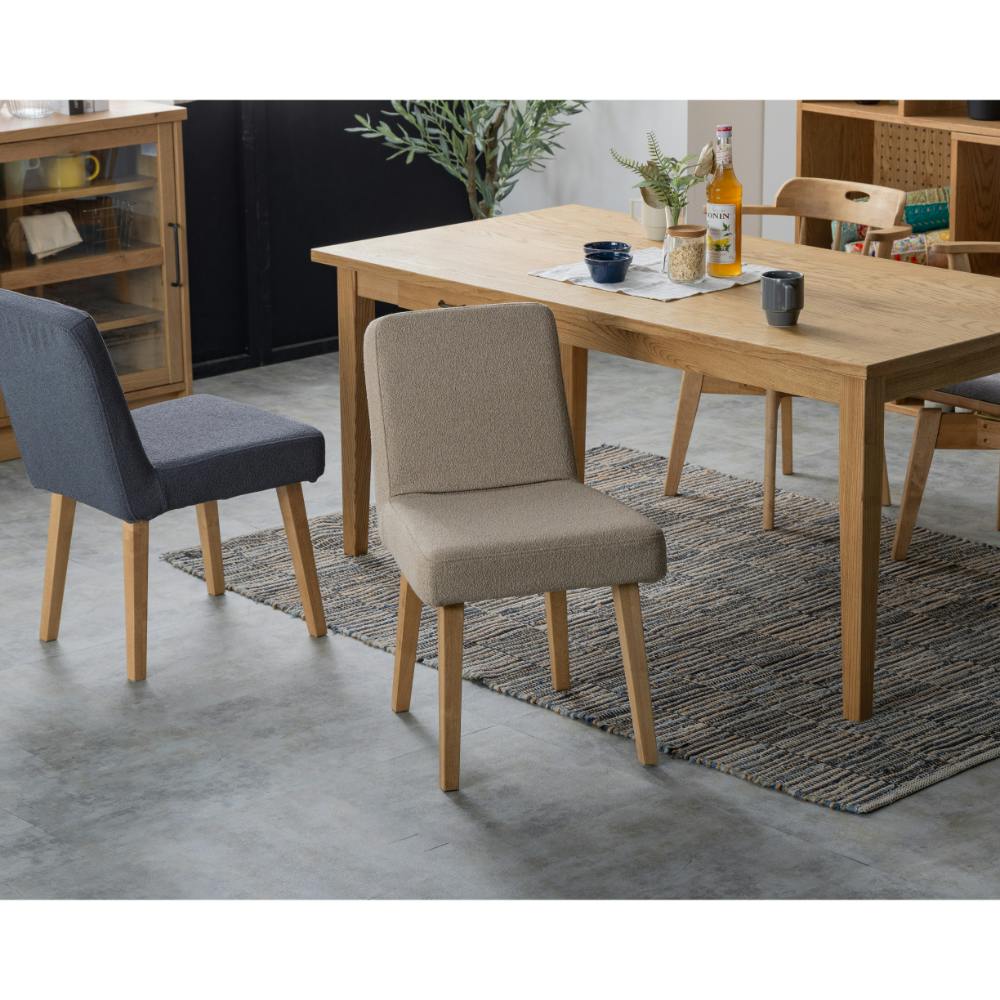 座面と背もたれの両方にウレタンを使用し、柔らかな座り心地のダイニングチェア。ベージュ色とグレー色の2色展開です。肌触りの良いファブリックにバーチの無垢材を使用した、温かみのあるチェアです。座面と背もたれは汚れても水洗い可能なカバーリング仕様になっています。