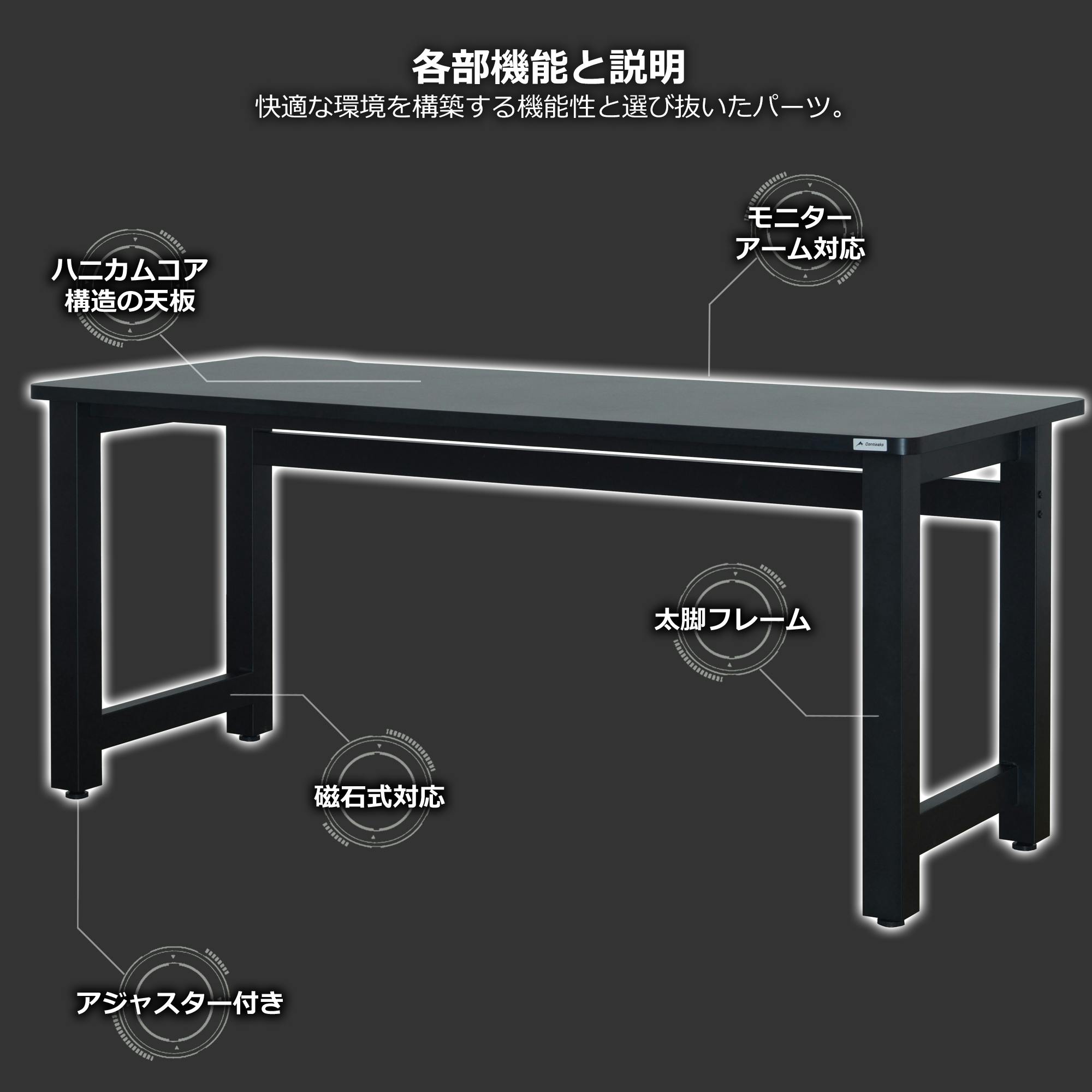 構造フレーム+ハニカム構造。軽量化することで天板を軽くし揺れも防止。