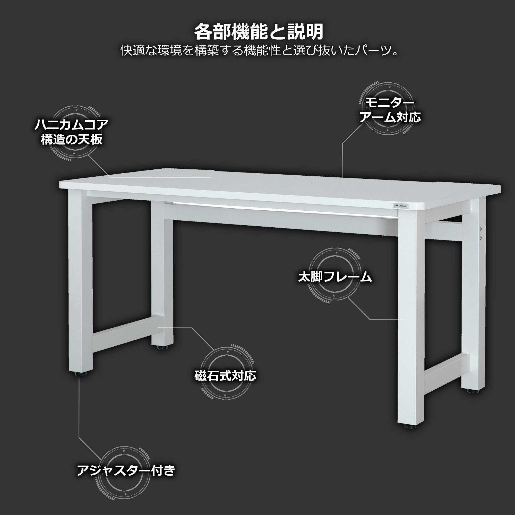 構造フレーム+ハニカム構造。軽量化することで天板を軽くし揺れも防止。