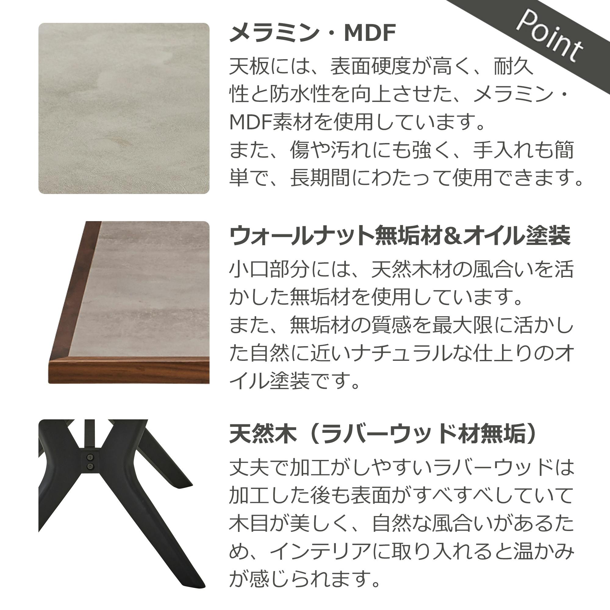 天板:メラミン 天板木口:ウォールナット無垢材 脚:ラバーウッド材 原産国:ベトナム