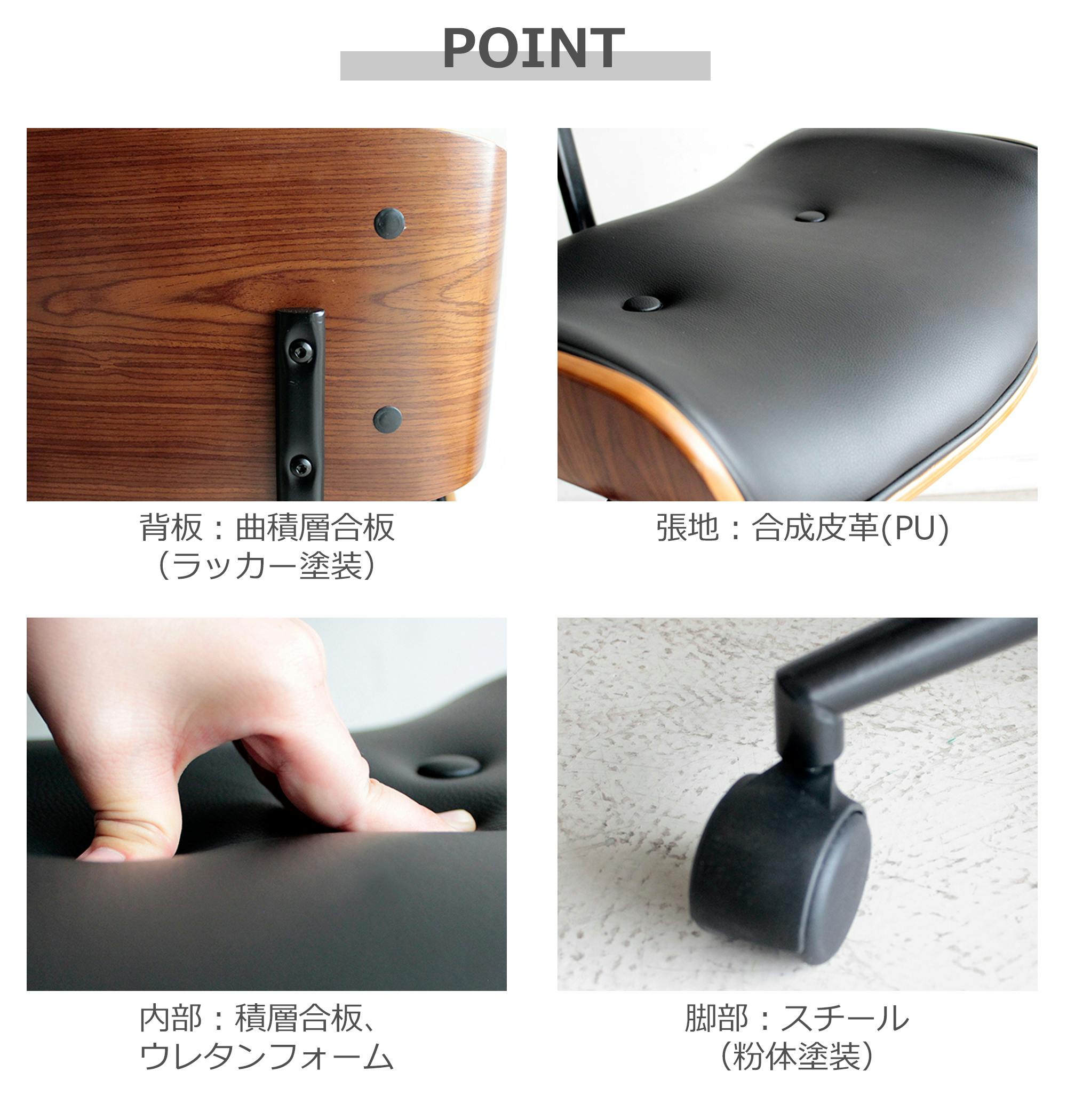 張地:合成皮革(PU) 前板:曲積層合板(ラッカー塗装) 脚部:スチール(粉体塗装) 原産国:中国
