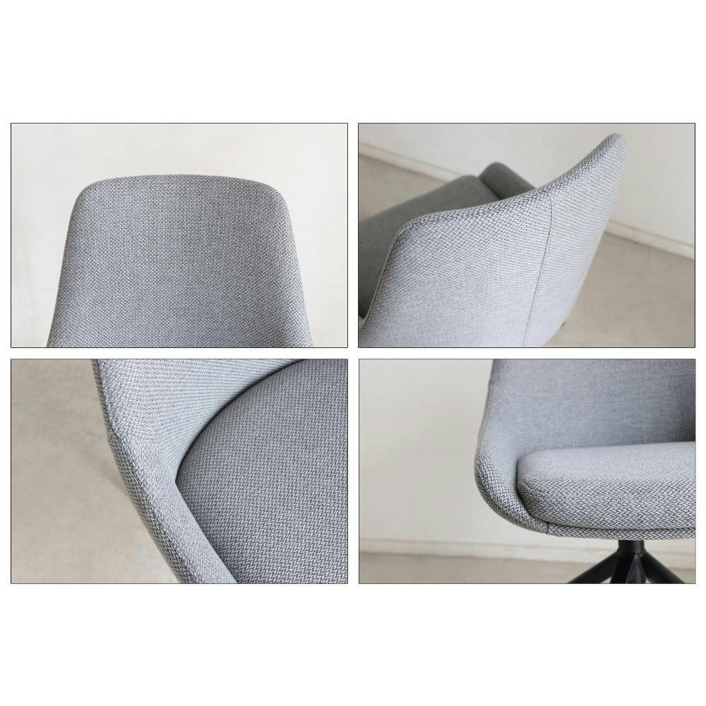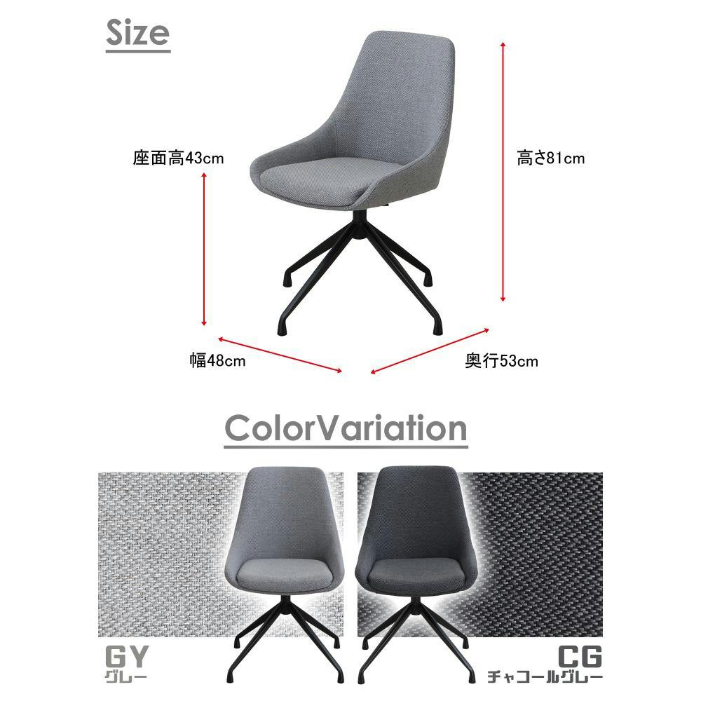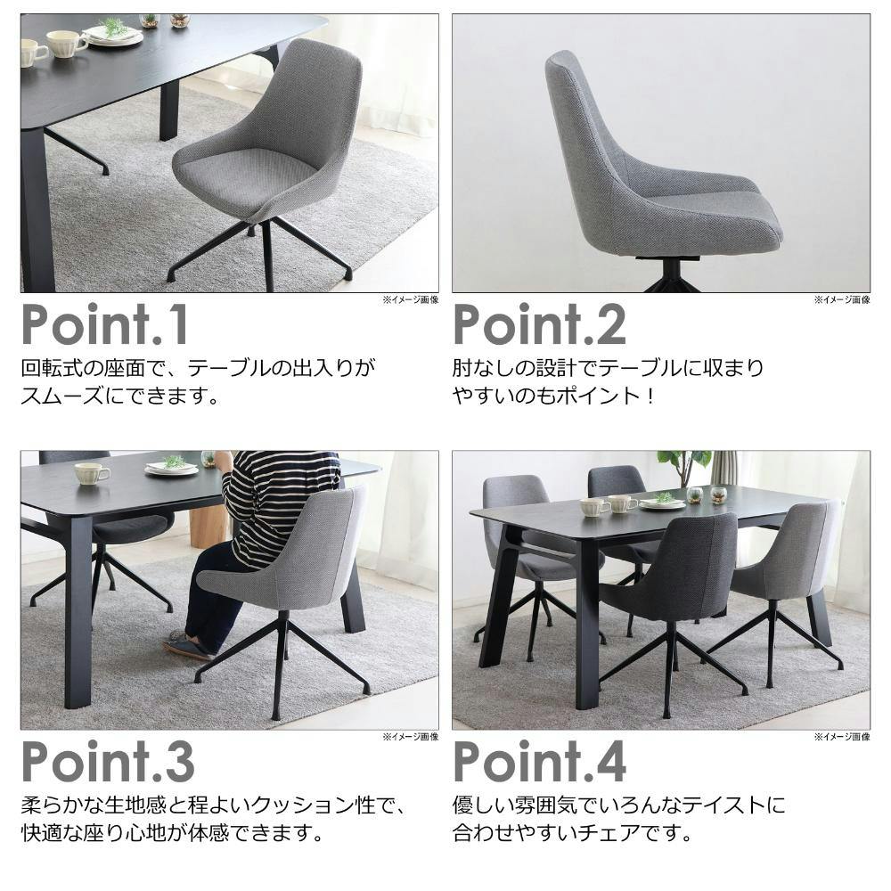 回転式の座面で、テーブルの出入りがスムーズにできます。肘なしの設計でテーブルに収まりやすいのもポイント!柔らかな生地感と程よいクッション性で、快適な座り心地が体感できます。