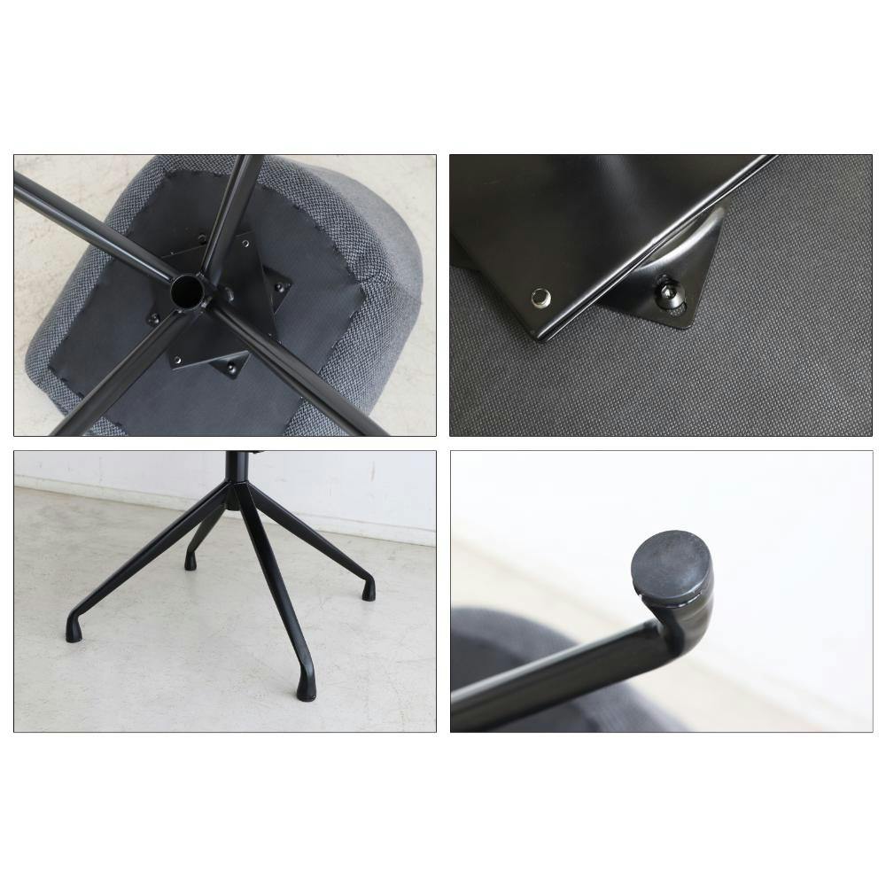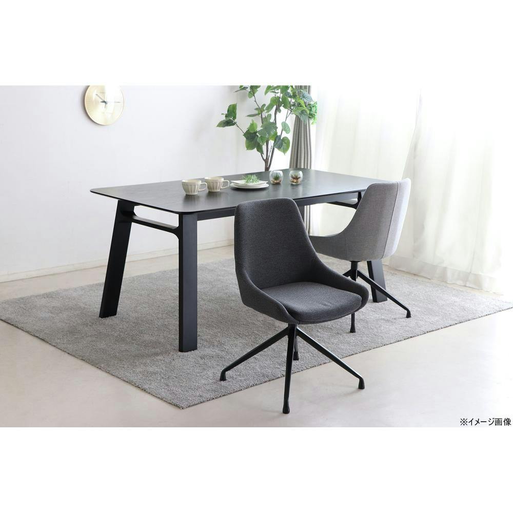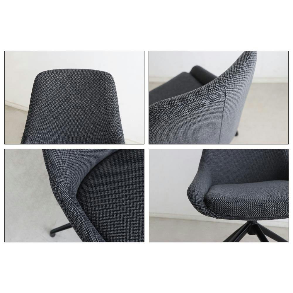 回転式の座面で、テーブルの出入りがスムーズにできます。肘なしの設計でテーブルに収まりやすいのもポイント!柔らかな生地感と程よいクッション性で、快適な座り心地が体感できます。