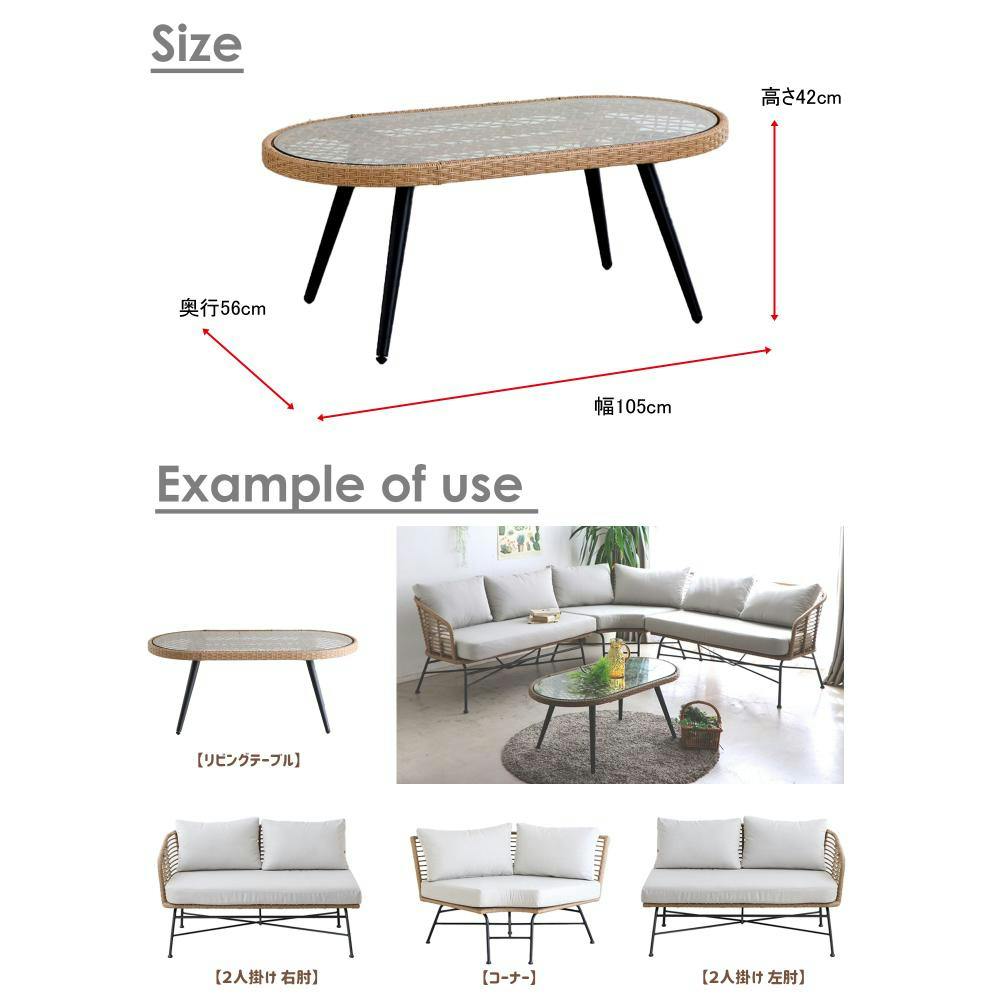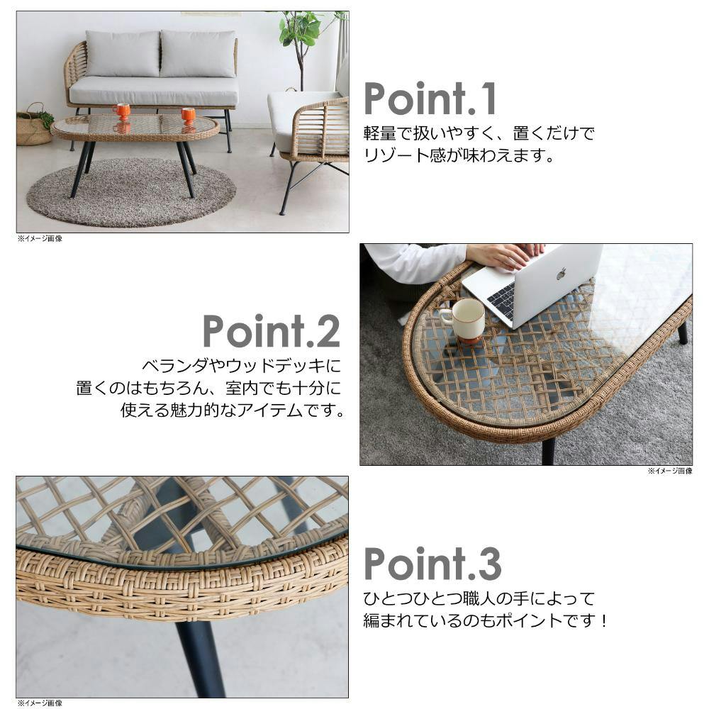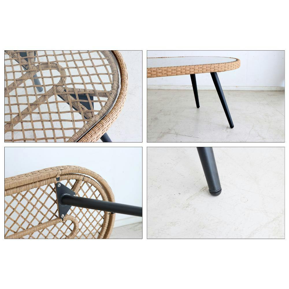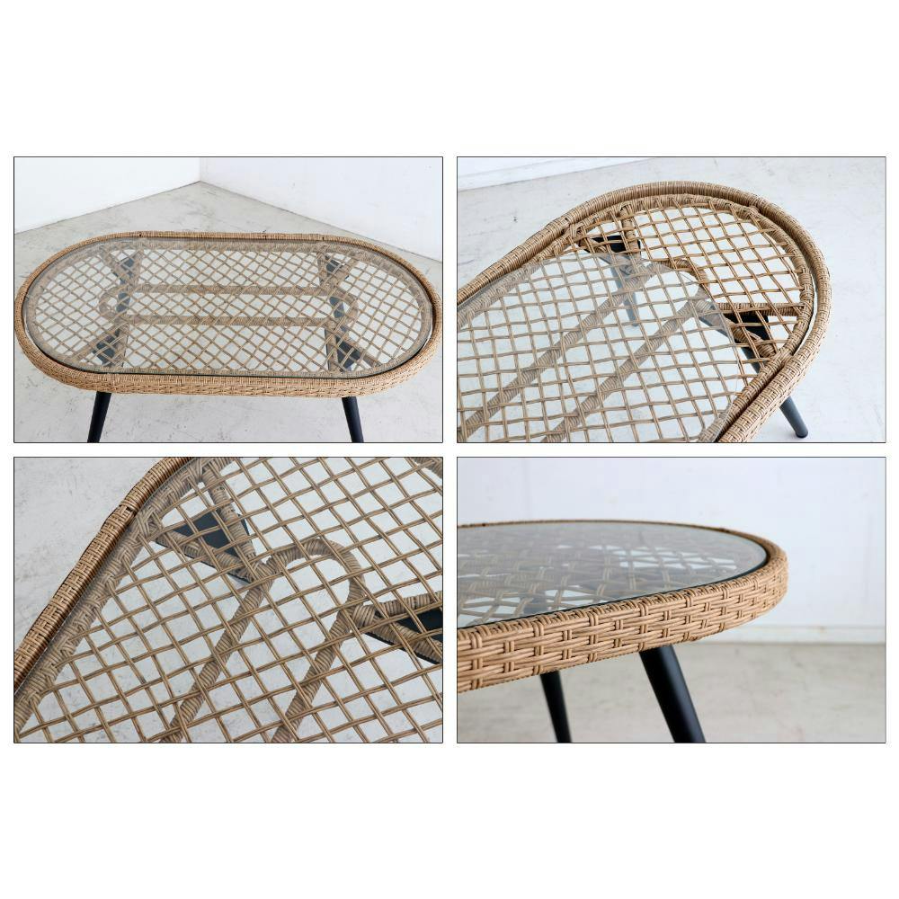 天板:ポリエチレン(ラタン調) ガラス:強化5mm透明ガラス 脚部:スチール(粉体塗装) 原産国:中国