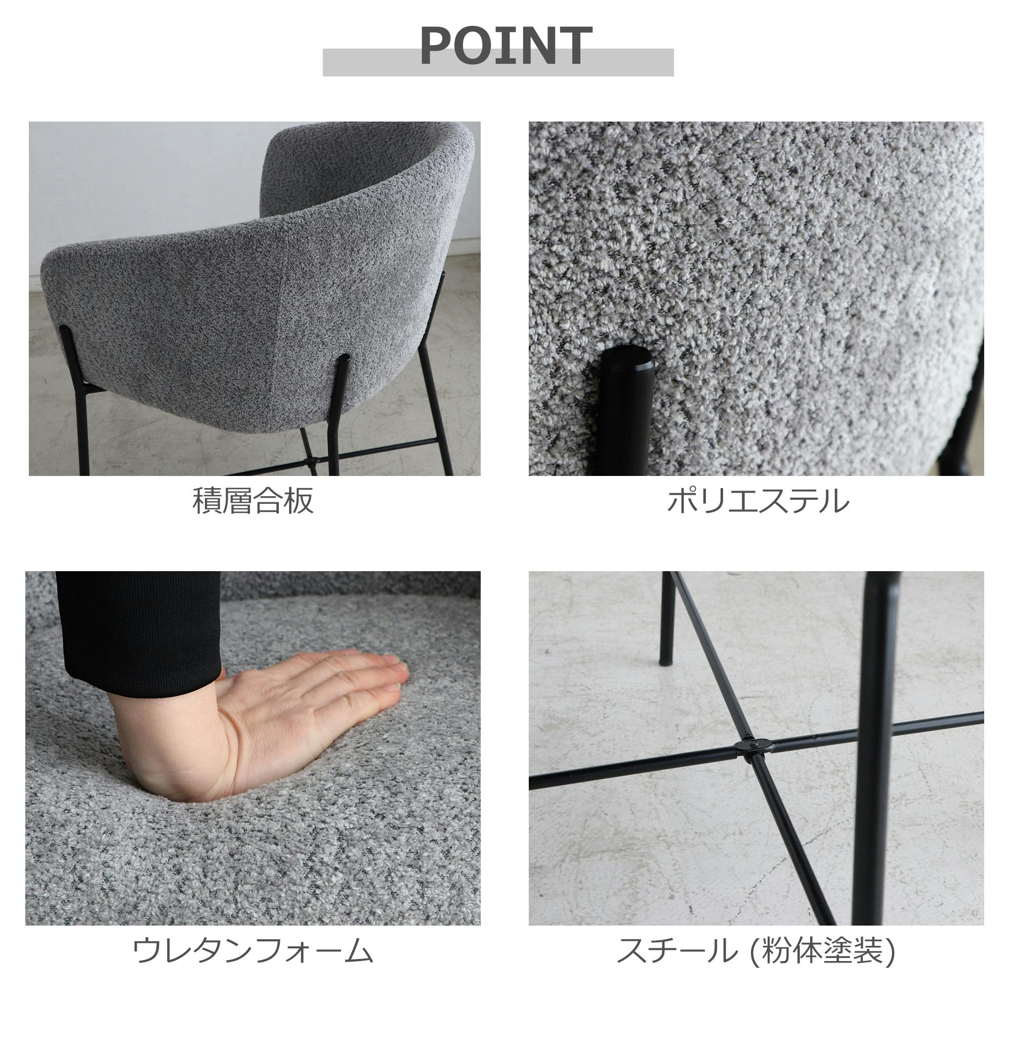 ファッション業界で注目を浴びているブークレー生地。極厚のファブリッククッションで、包み込まれるような座り心地のチェアをインテリアに取り入れることで上級コーデに変身します。包み込まれるようなフォルムは、まるでソファに座っているかのようなくつろぎを味わえます。