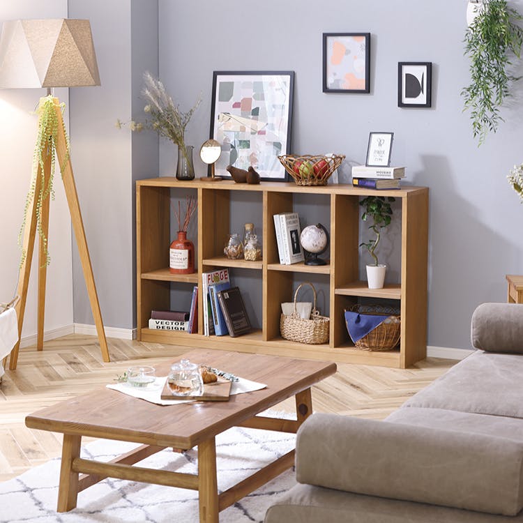 魅せる収納を楽しめるオープンシェルフです。お気に入り物を収納しながら飾れます。また、お部屋の間仕切りとしても使えます。