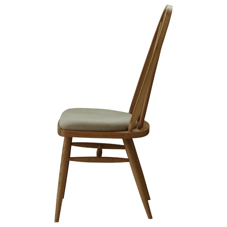 背中全体を支えてくれるハイバックチェアです。スポークのデザインが背中にフィットし、ゆったりと座れます。