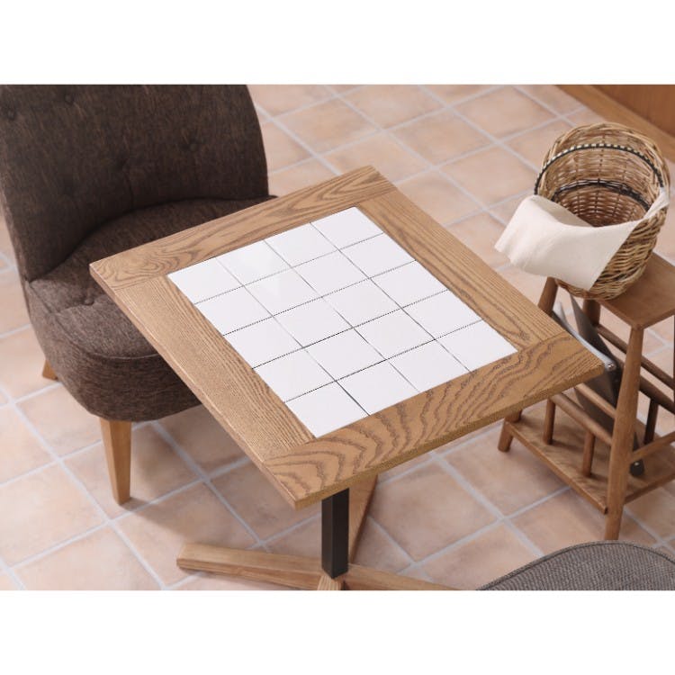 6種類の天板と高さから選べるカフェテーブル。タイルは可愛いだけでなく、耐熱仕様なので実用性にも優れています。