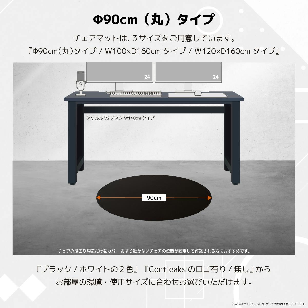 床へのダメージを軽減するチェアマット。用途やサイズの選べる3サイズ展開。ブラックとホワイトの2色展開。